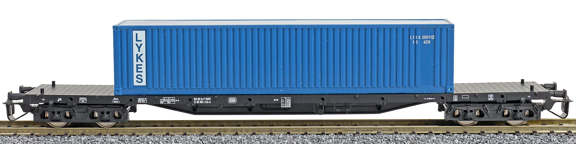 | nákladní plošinový vůz černý s kontejnerem 40' „LYKES“ |