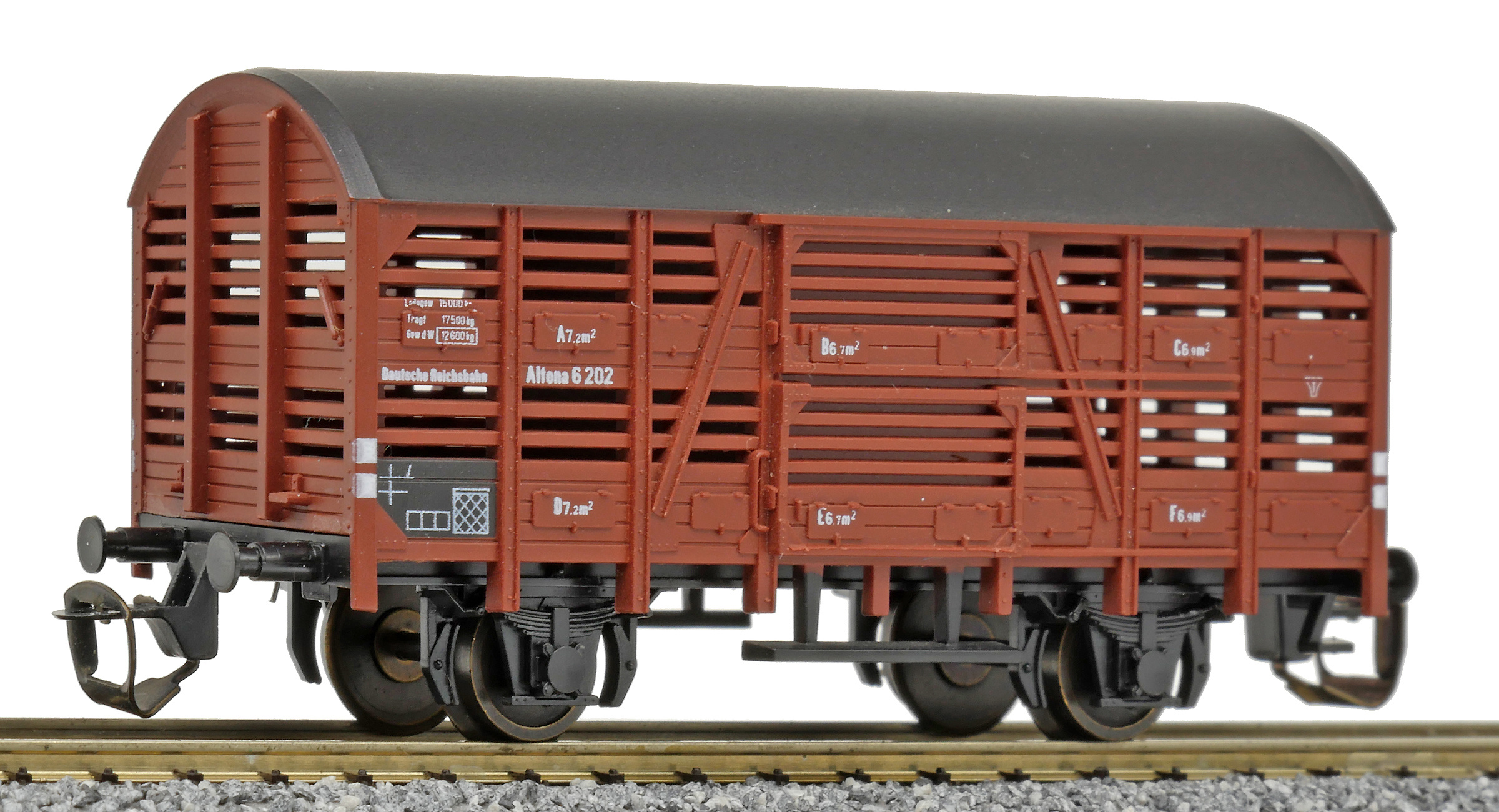 nákladní vůz na přepravu drobného zvířectva červenohnědý s černou střechou