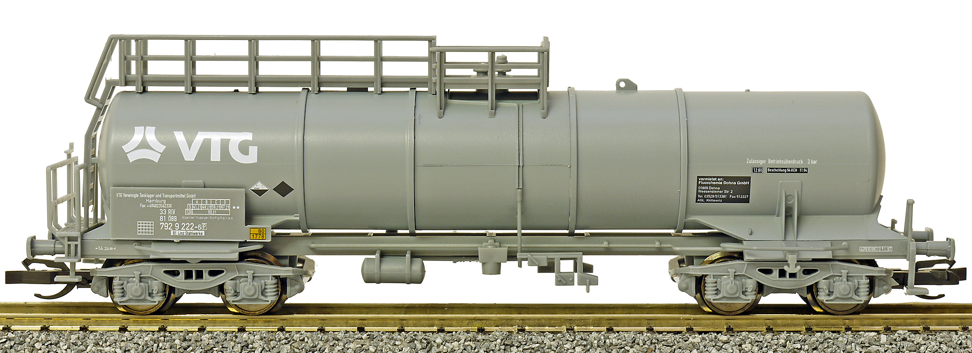 | kotlový vůz šedý s logem „VTG“ |