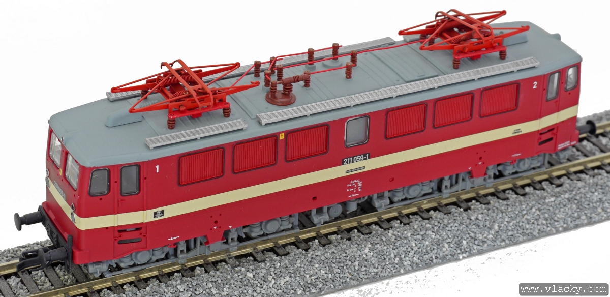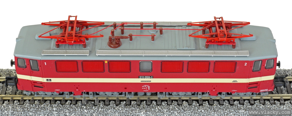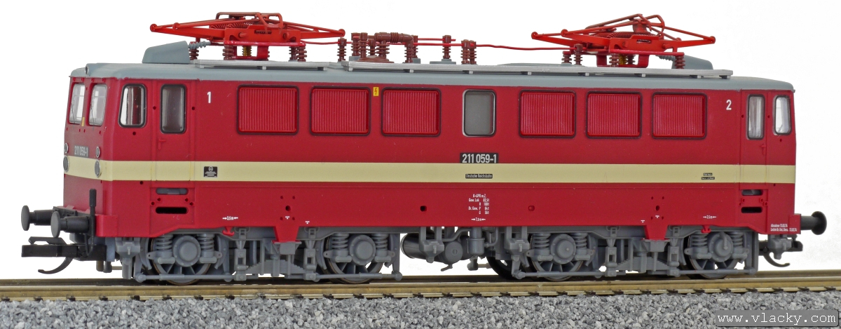 Popis   elektrická lokomotiva červená s krémovým pruhem, šedá střecha a šedé podvozky