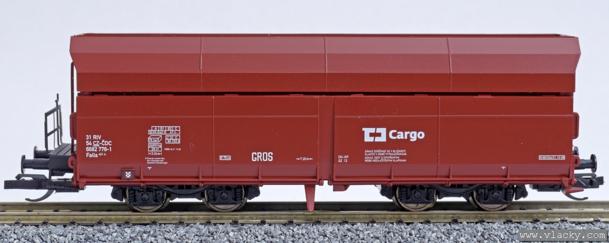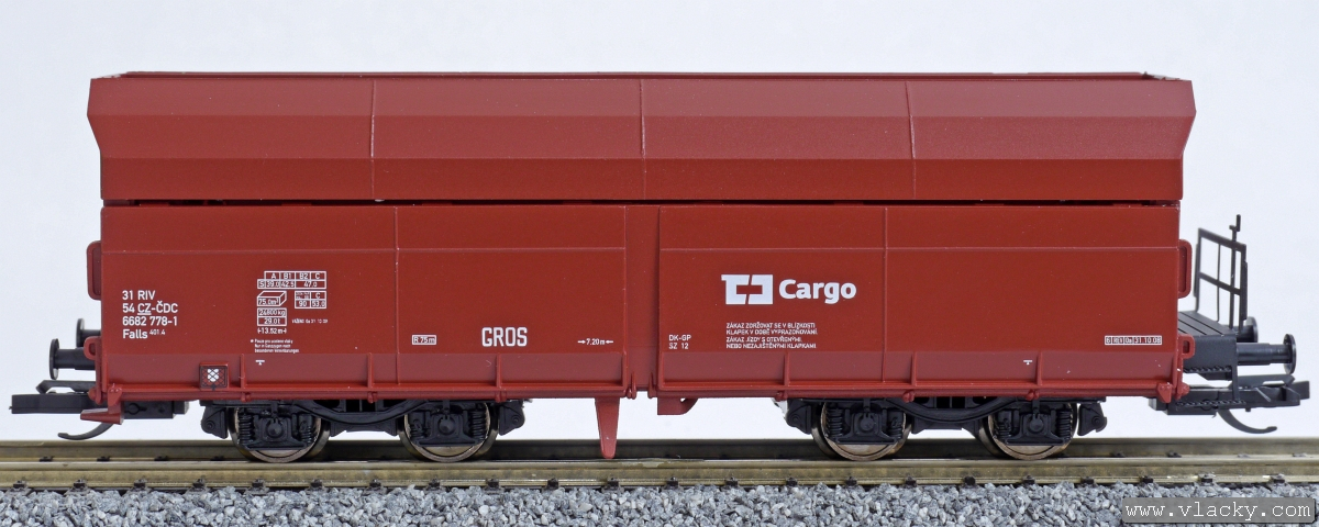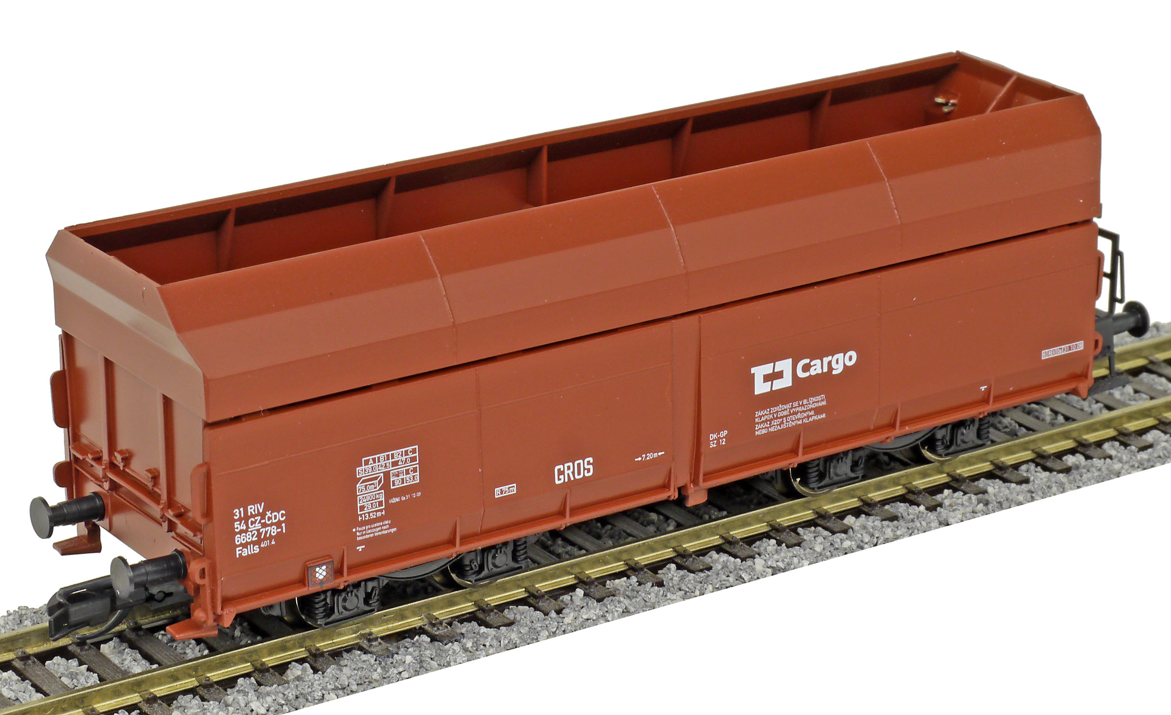 | nákladní samovýsypný vůz červenohnědý s logem „ČD Cargo“ |