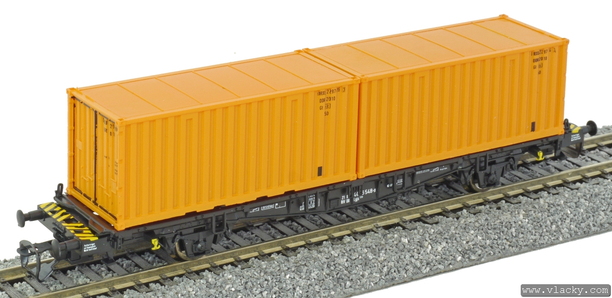 | kontejnerový vůz černý se dvěma oranžovými kontejnery 20' |