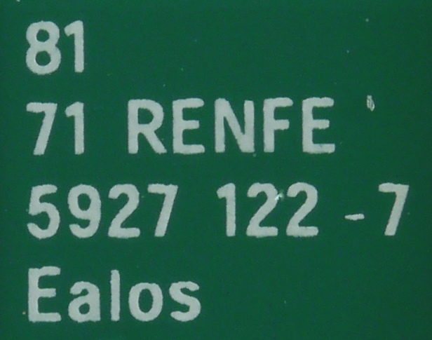 | • 81 71 5927 122-7 | → | nákladní, s podvozky, ve vlastnictví železniční správy, pro mezinárodní dopravu dle zvláštních umluv |