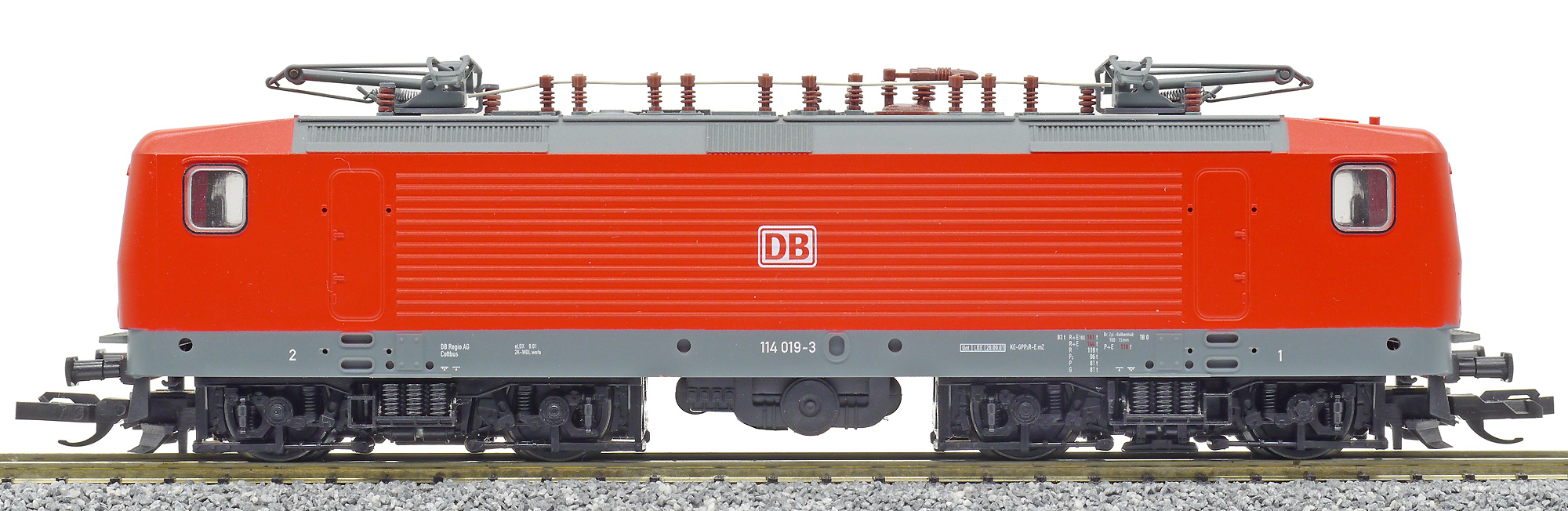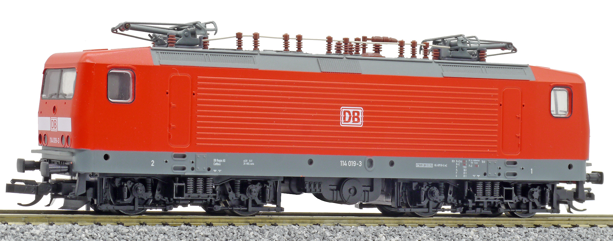Popis   elektrická lokomotiva červená s tmavěšedým rámem a hnědými podvozky