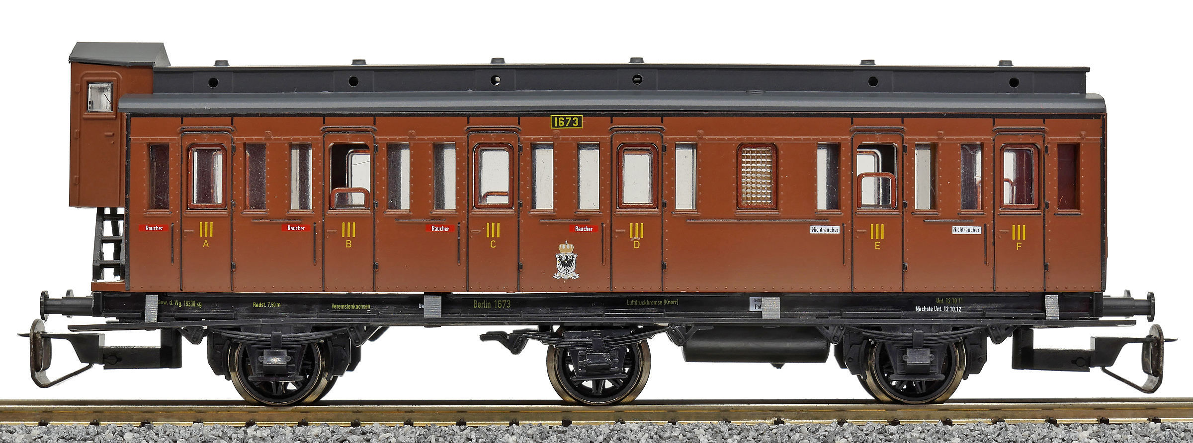Popis   oddílový osobní vůz červenohnědý s brzdařskou budkou 3. tř.