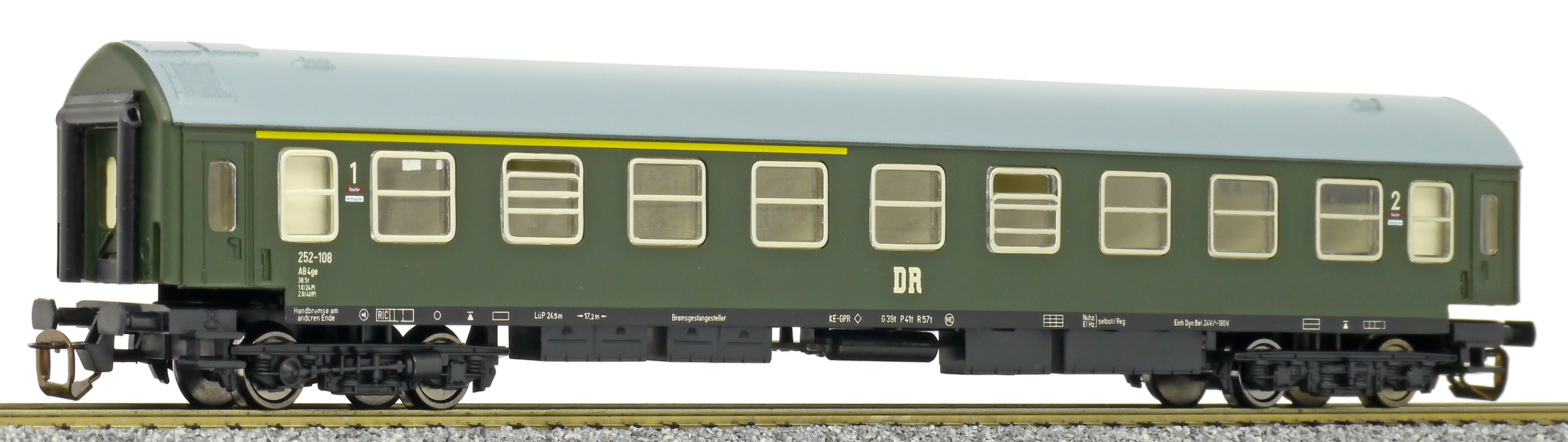 Popis   rychlíkový vůz zelený s šedou střechou 1./2. tř.
