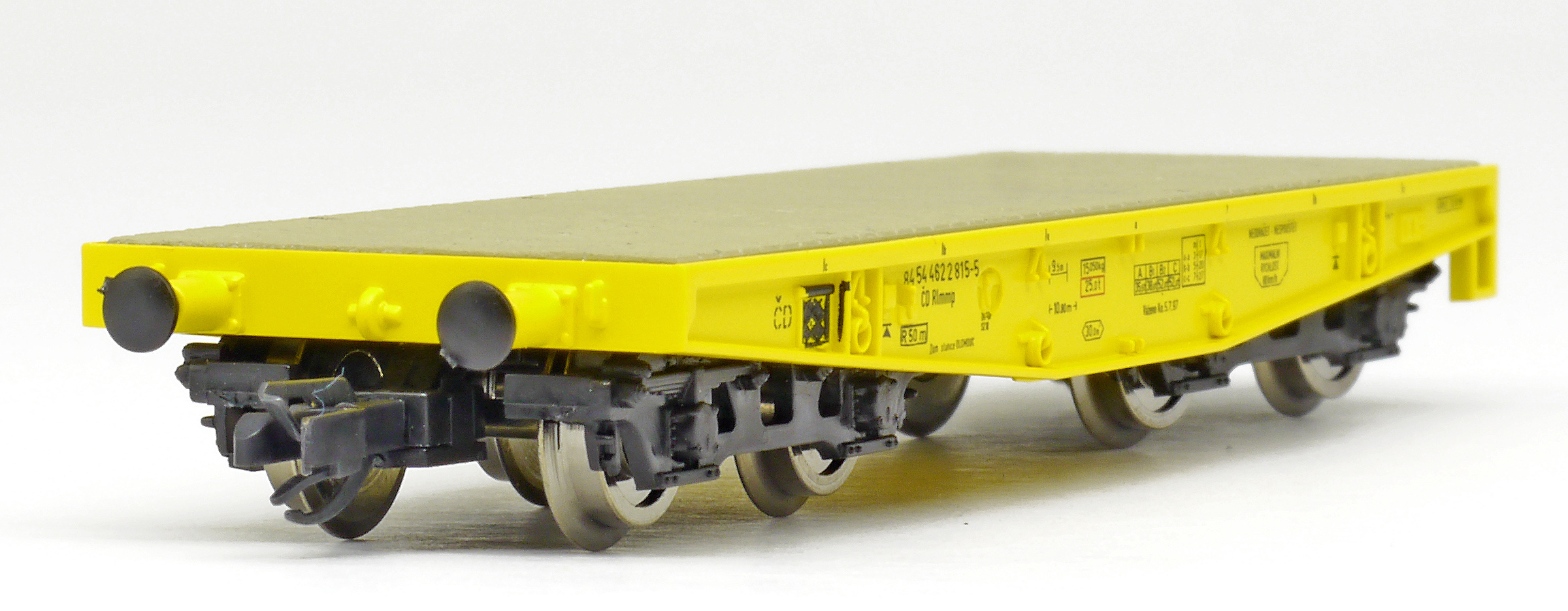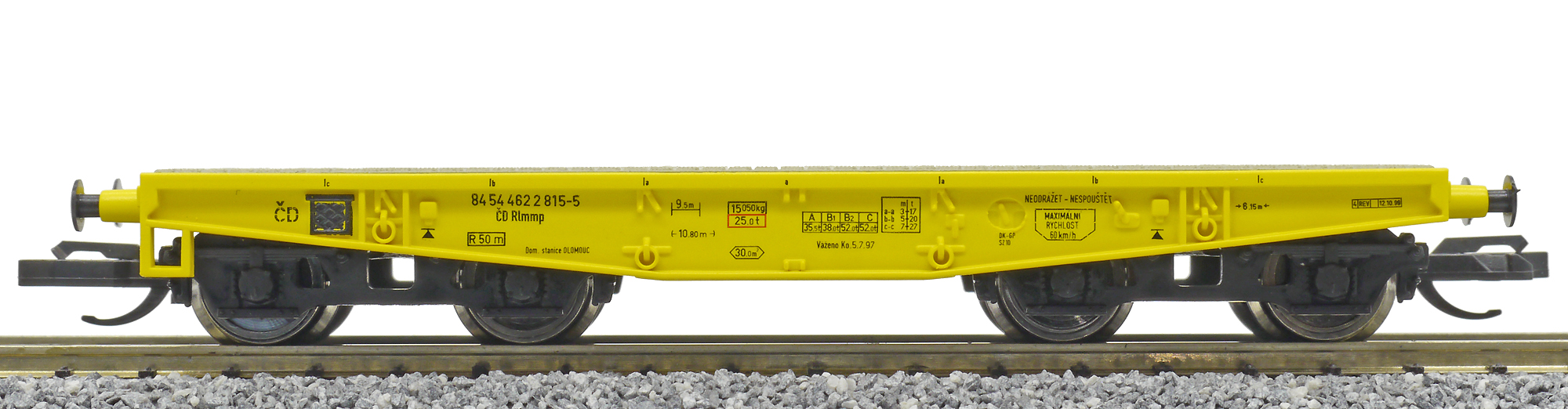| • Rlmmp | - | plošinový vůz podvozkový běžné stavby se sklopnými čelními stěnami a klanicemi |