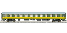 | rychlíkový vůz zelený se žlutým pruhem a šedou střechou 2. tř. |