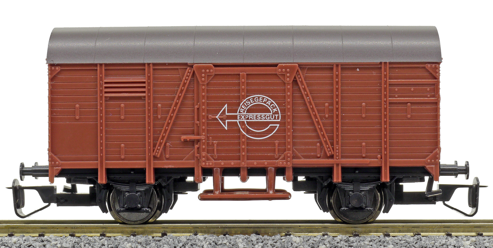 | krytý nákladní vůz červenohnědý s hnědou střechou „Expressgut“ |