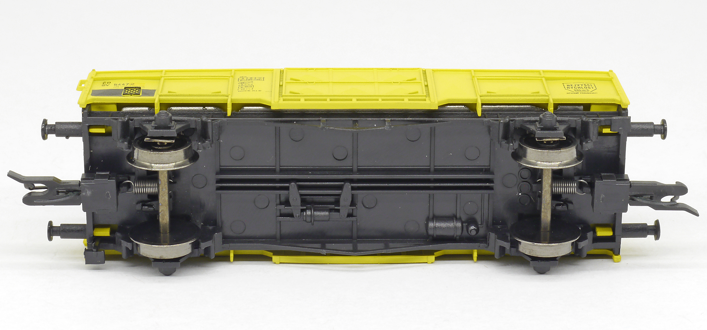 | otevřený nákladní vůz žlutý s černým pojezdem |