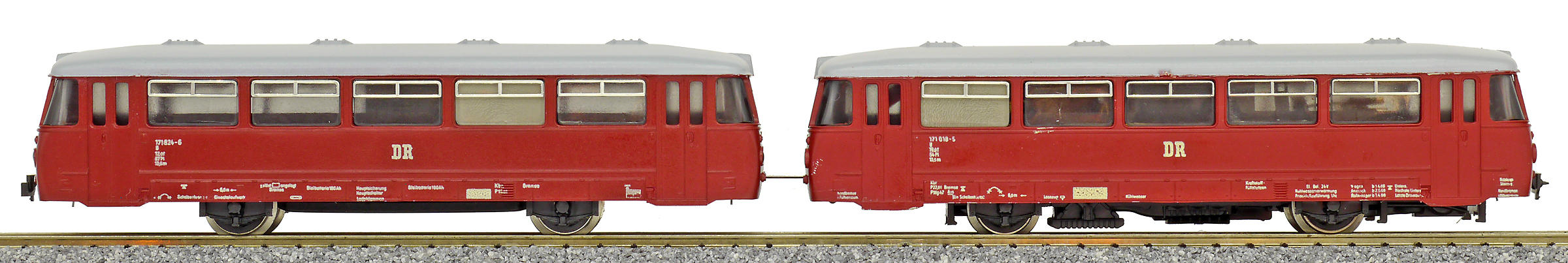 dvoudílná motorová jednotka červená s šedou střechou