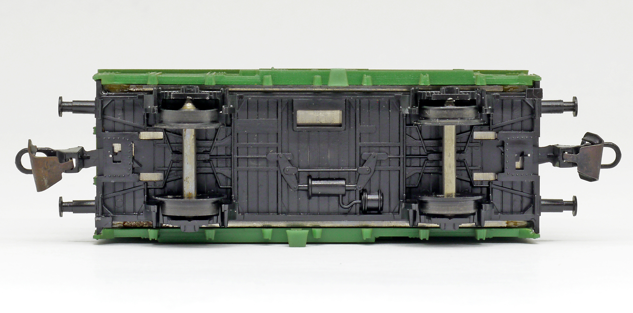 krytý nákladní vůz zelený s tmavě šedou střechou