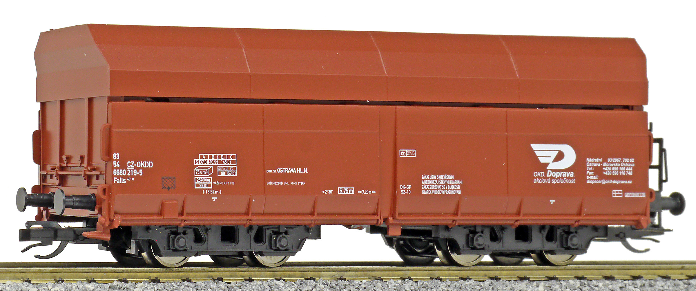 Popis   nákladní samovýsypný vůz červenohnědý „OKD Doprava“