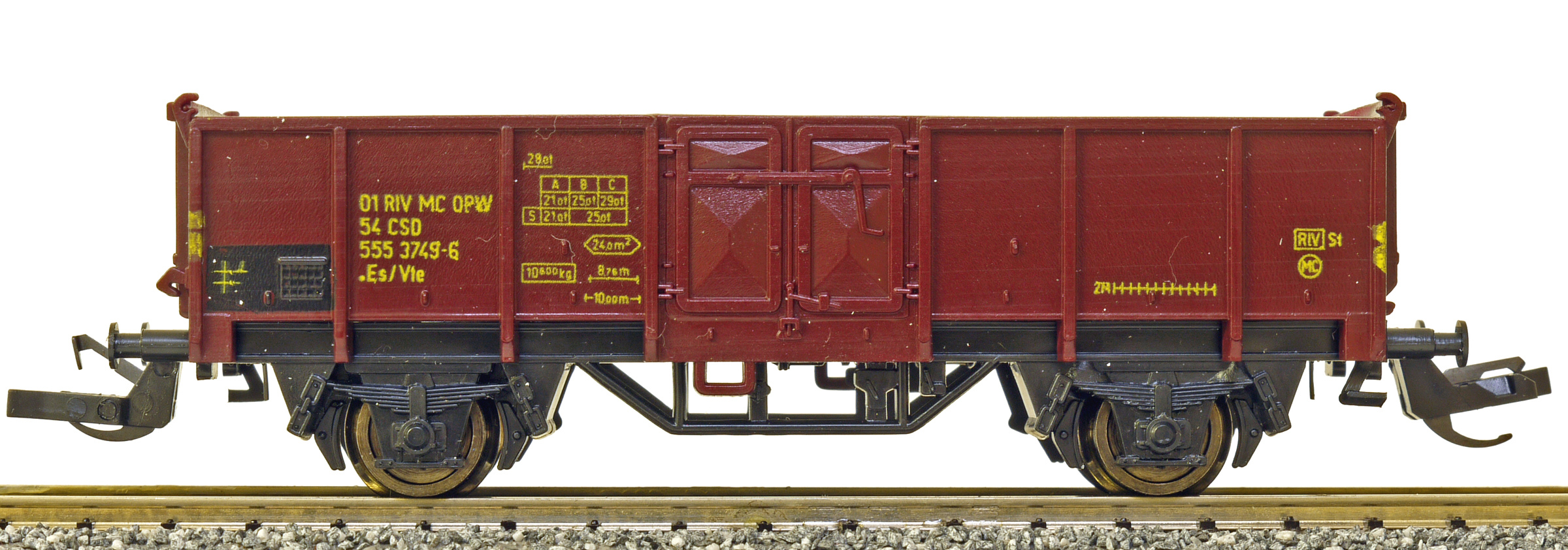 | • 01 54 555 3749-6 | → | nákladní, nezávislé nápravy, pevný rozchod, ve vlastnictví železniční správy, RIV, EUROP/IF |