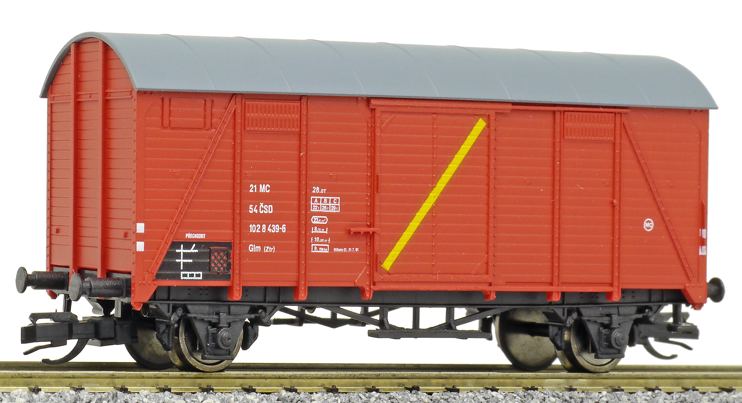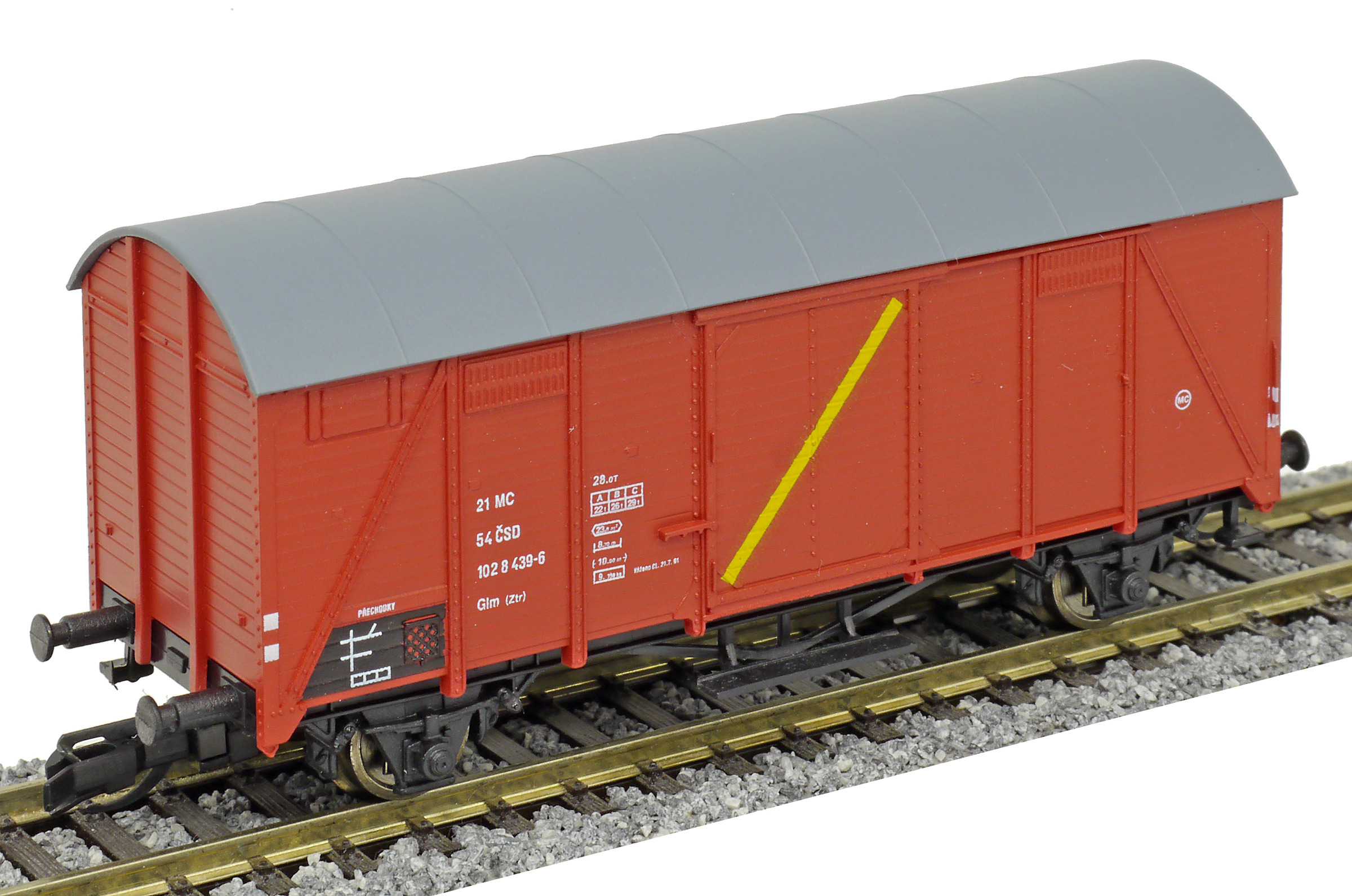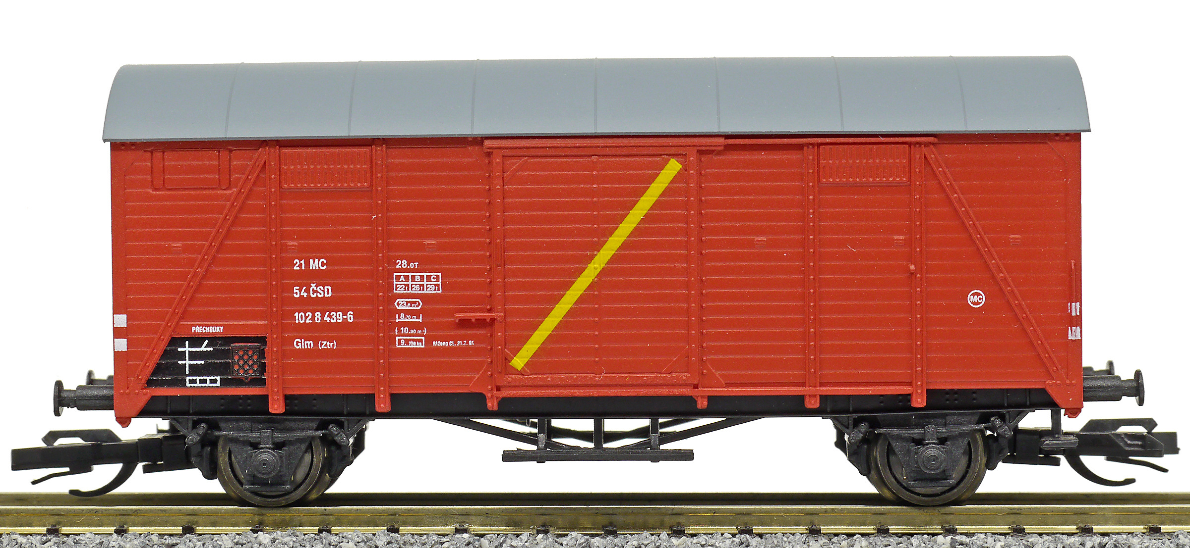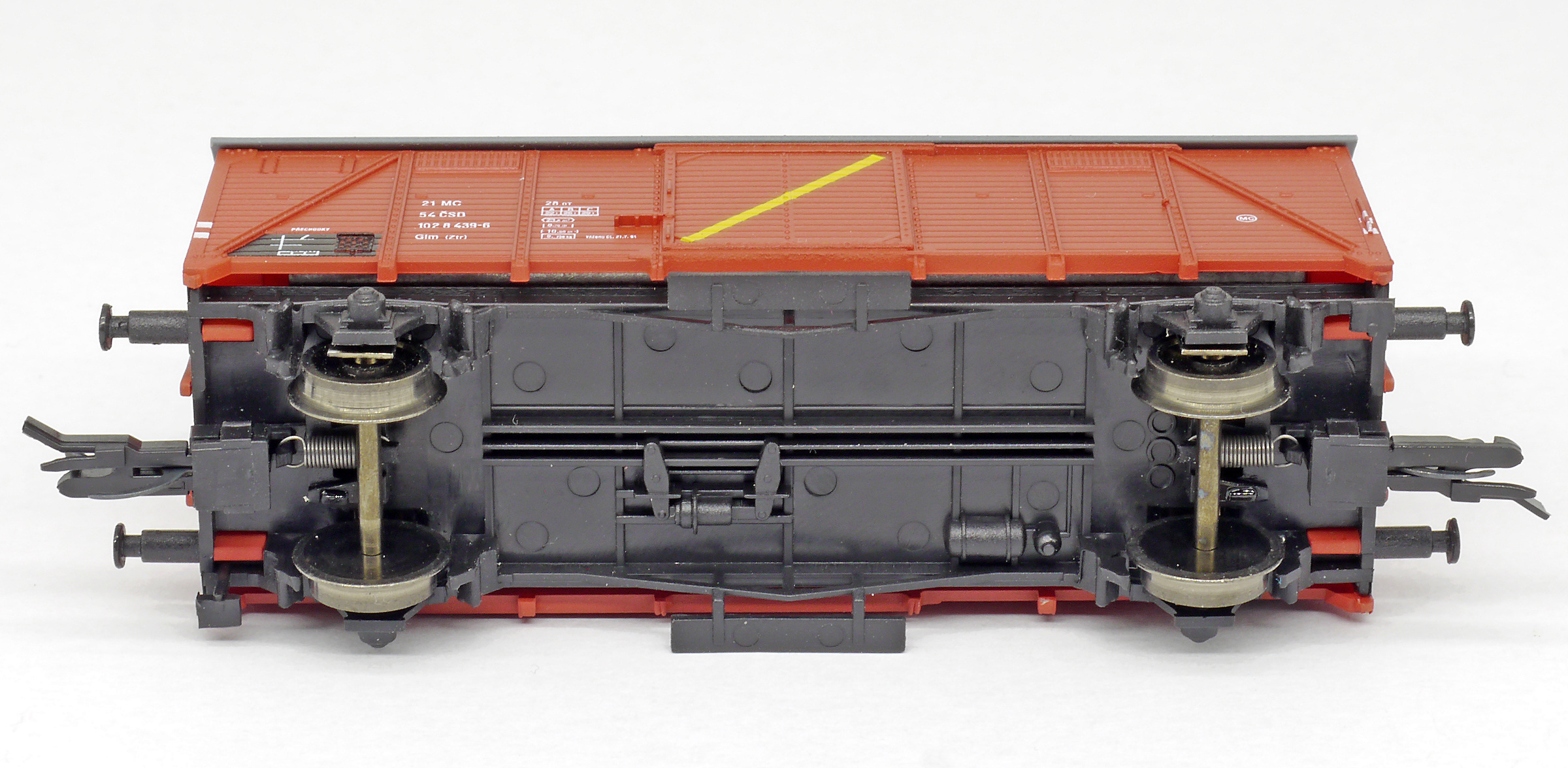 | • 21 54 102 8 439-6 | → | nákladní, nezávislé nápravy, pevný rozchod, ve vlastnictví železniční správy, RIV, PPV |