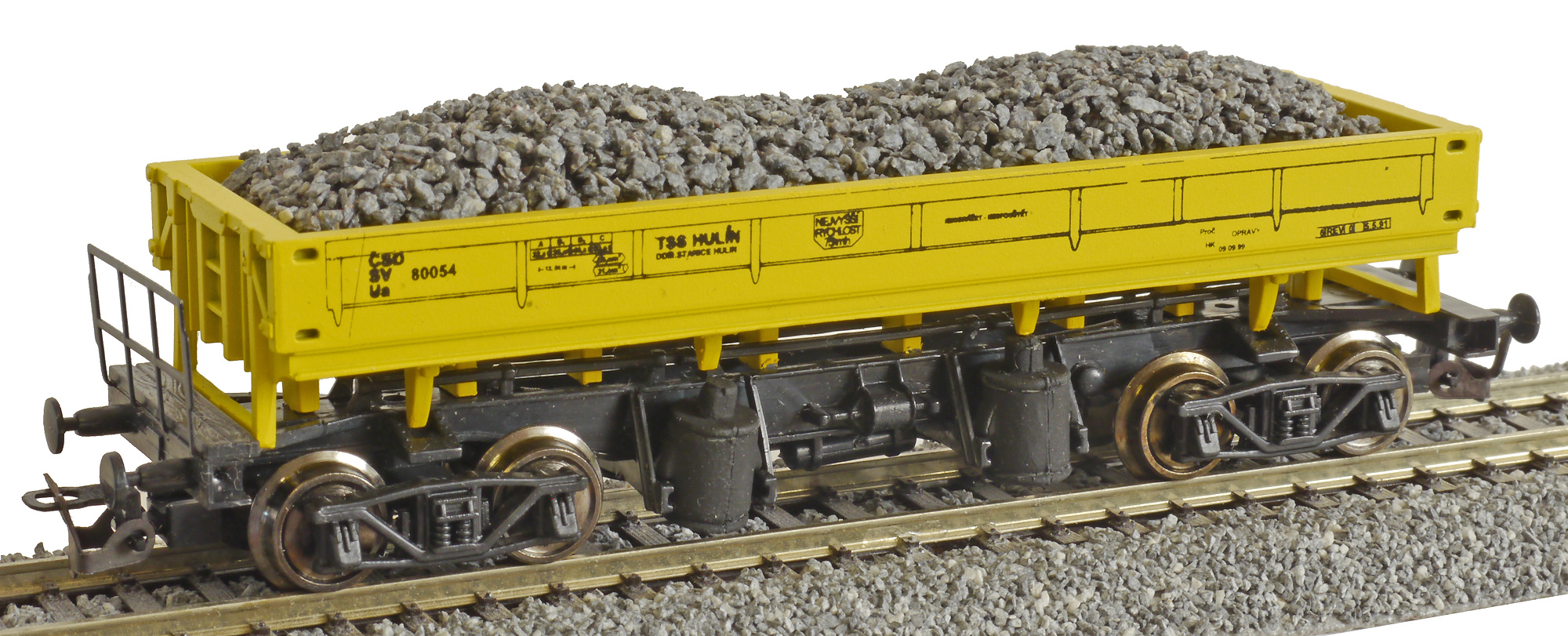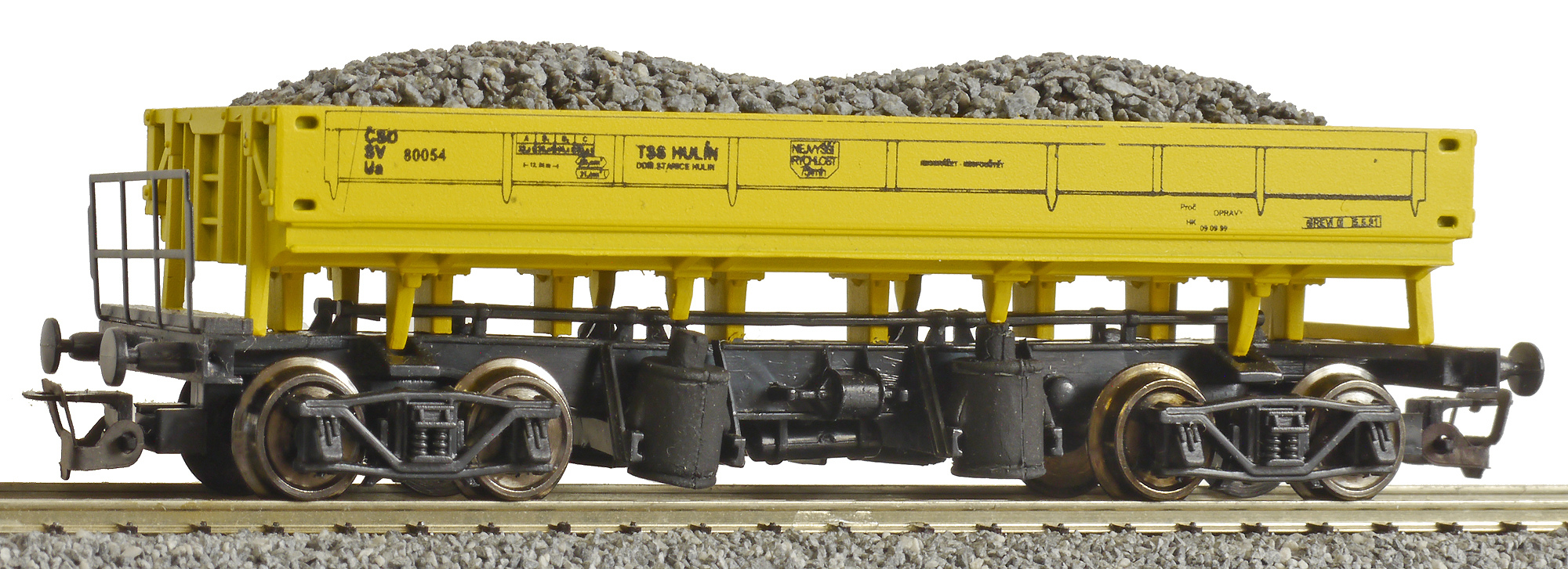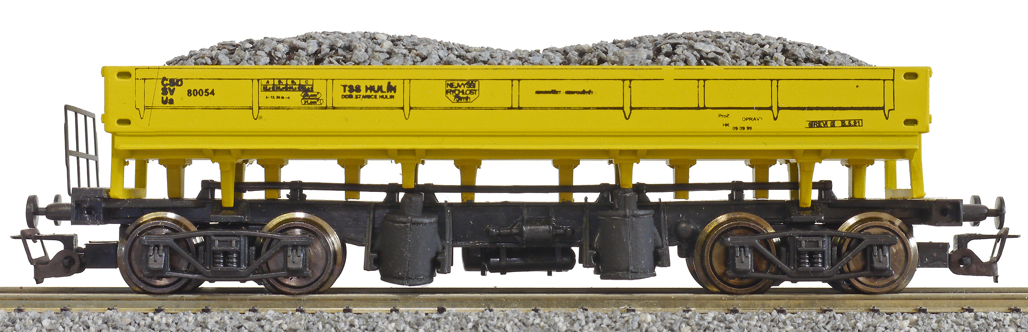 Popis   nákladní vůz oboustranně výsypný žlutý s černým pojezdem a s nákladem „TSS Hulín“