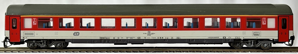 | rychlíkový vůz červený-bílý s šedou střechou 1. tř. |