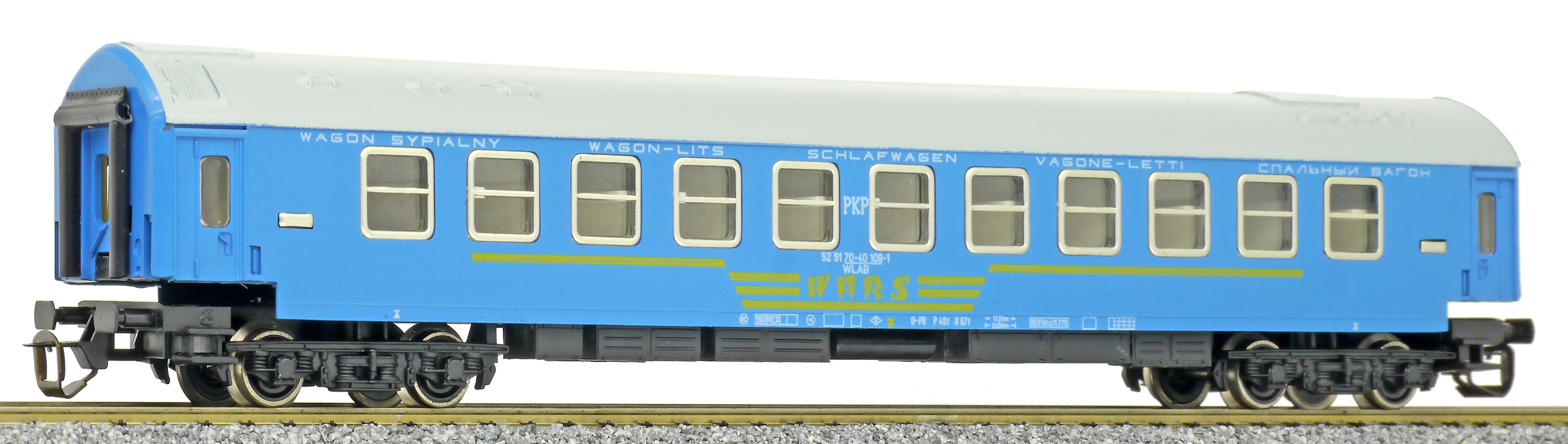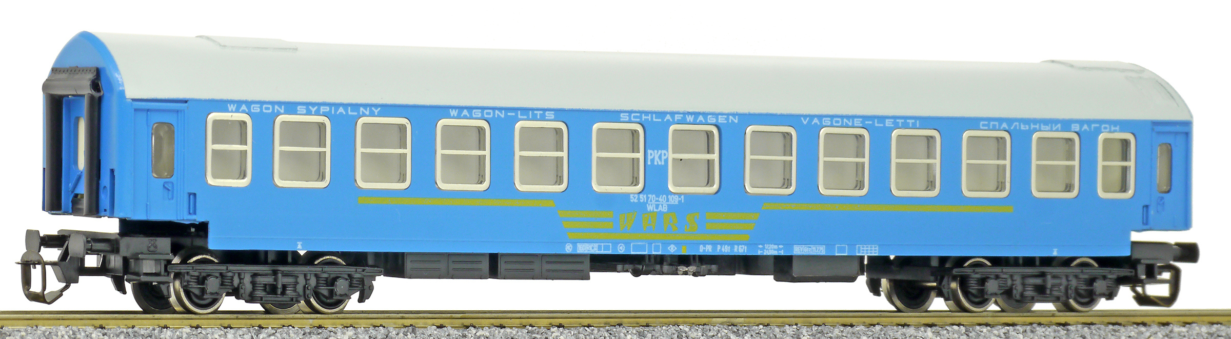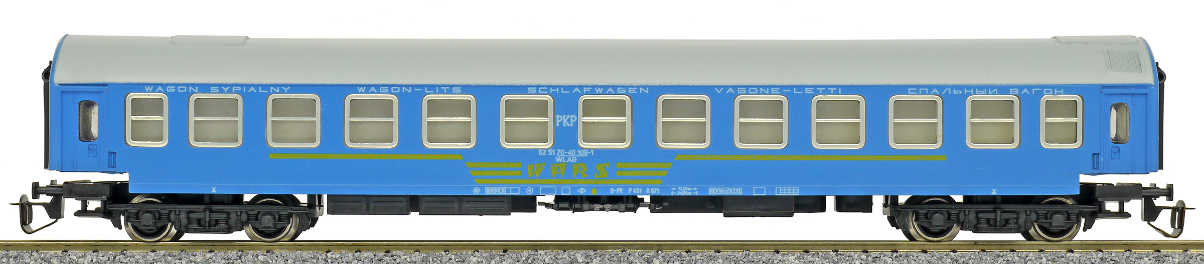 | lůžkový vůz modrý s šedou střechou „WARS“ |