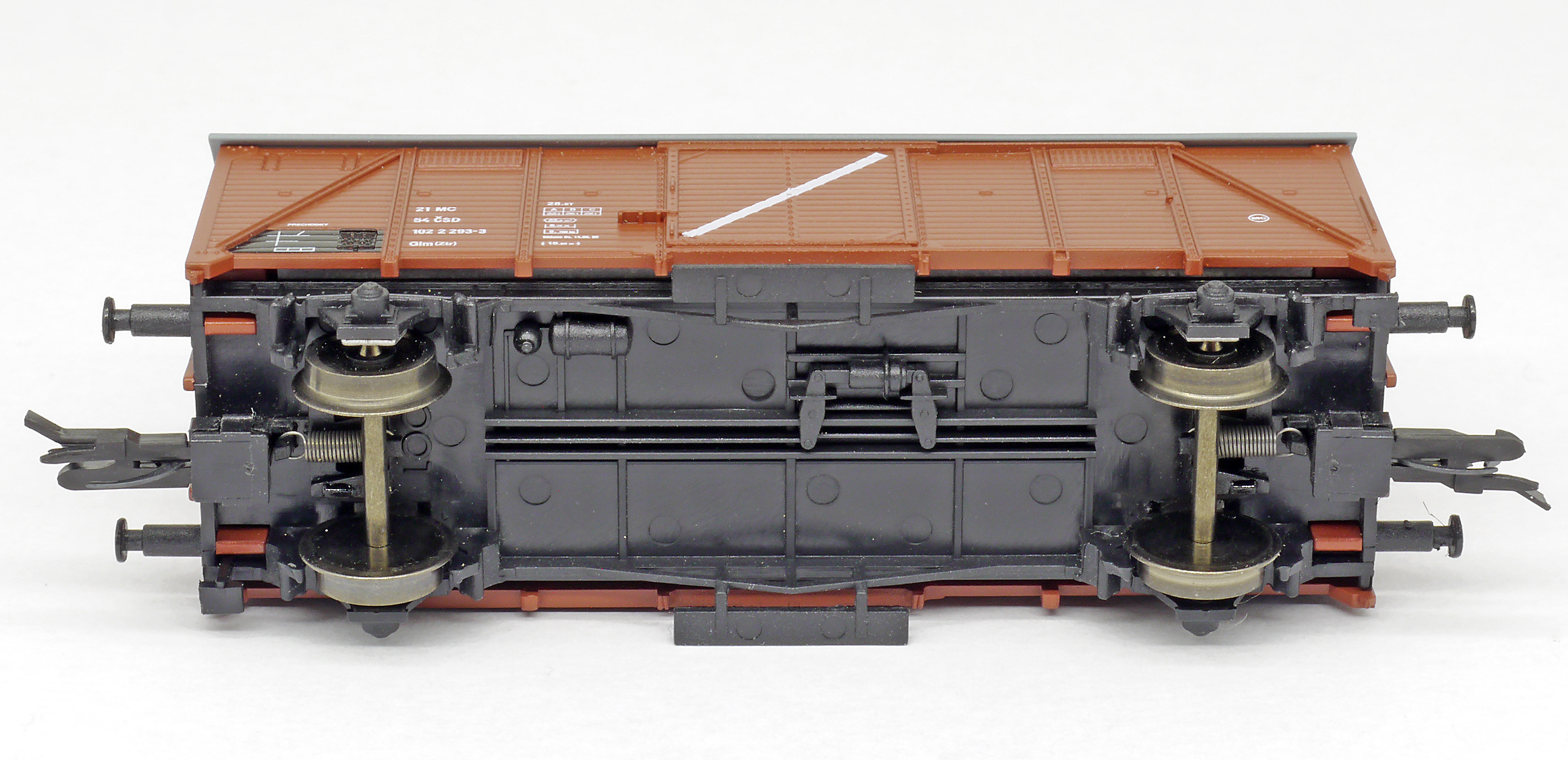 | • 21 54 102 2 293-3 | → | nákladní, nezávislé nápravy, pevný rozchod, ve vlastnictví železniční správy, RIV, PPV |