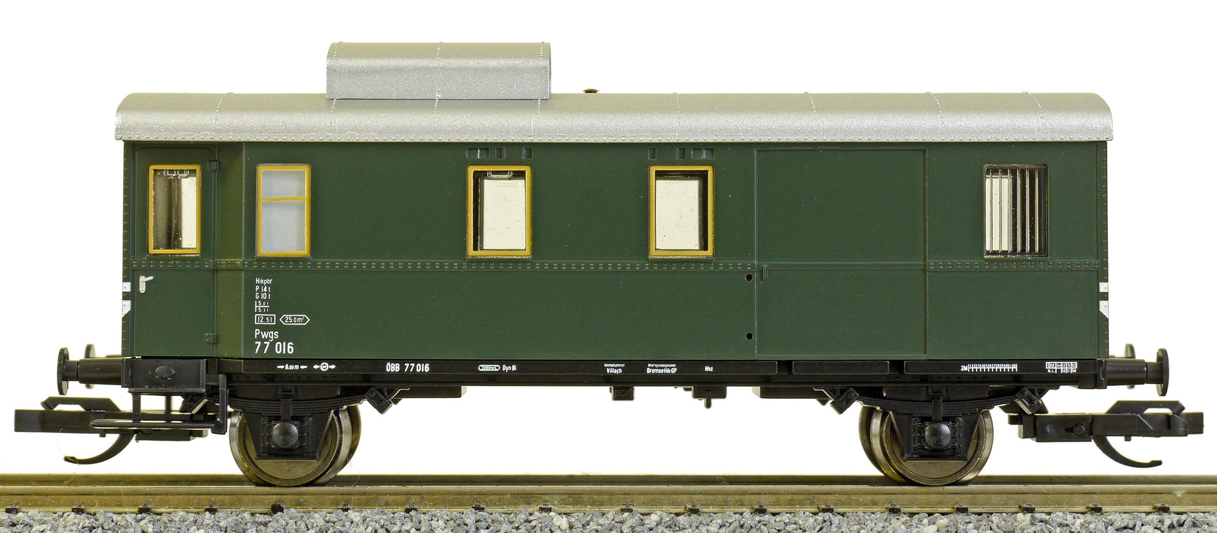 | služební vůz pro nákladní vlaky zelený s šedou střechou |