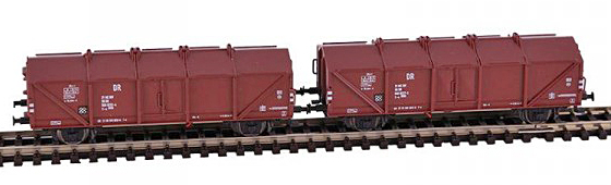 | set dvou červenohnědých nákladních vozů s klapkami |