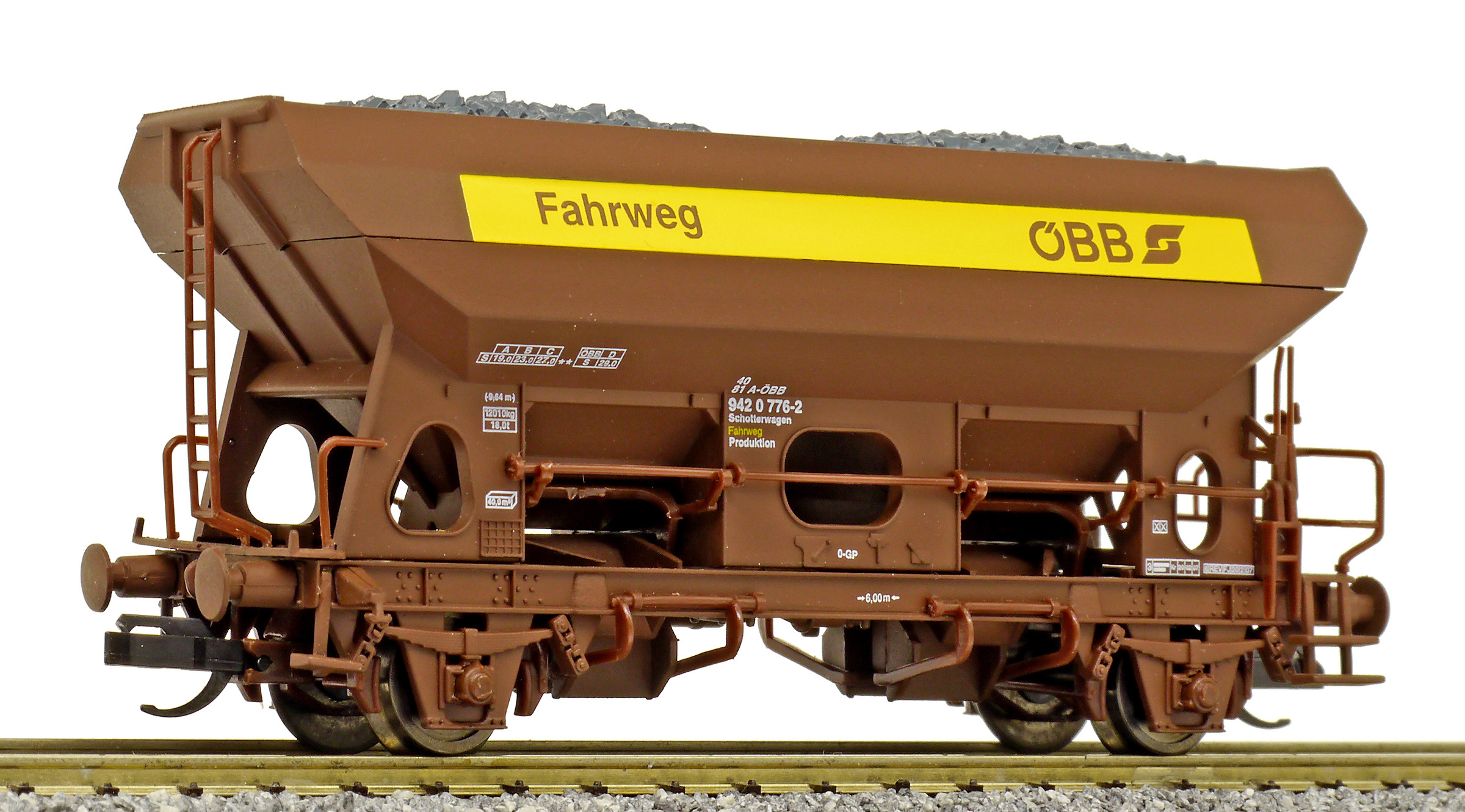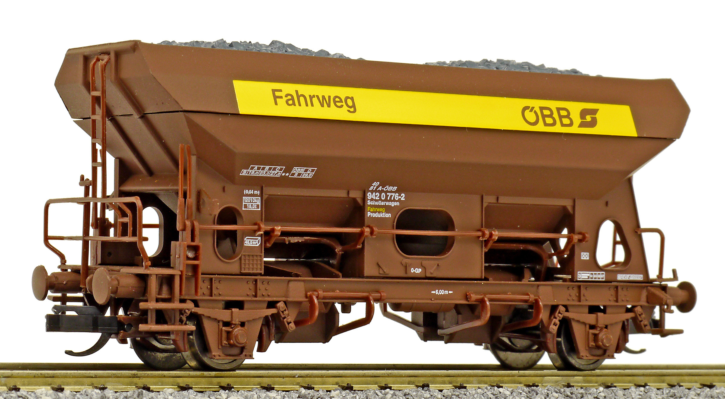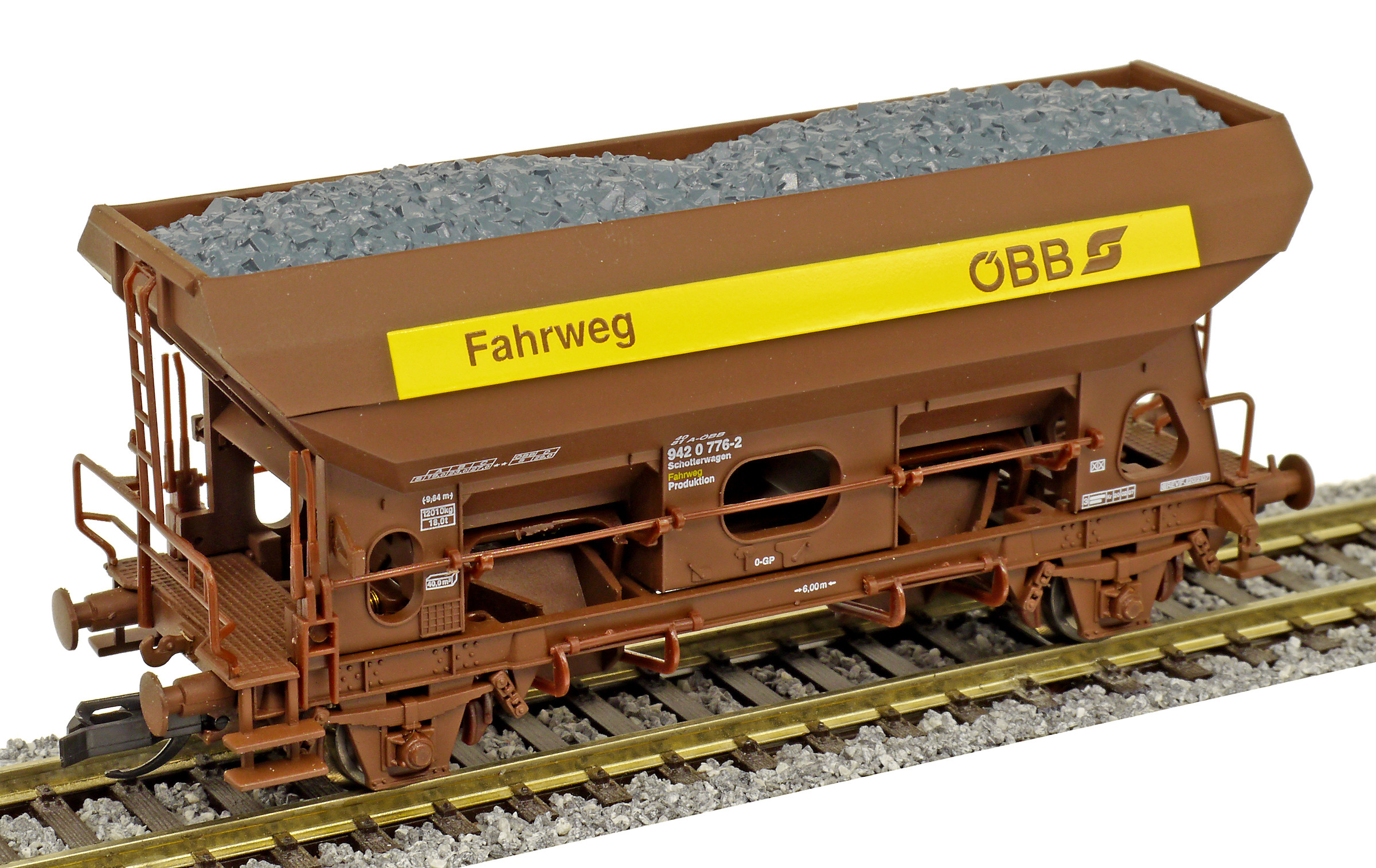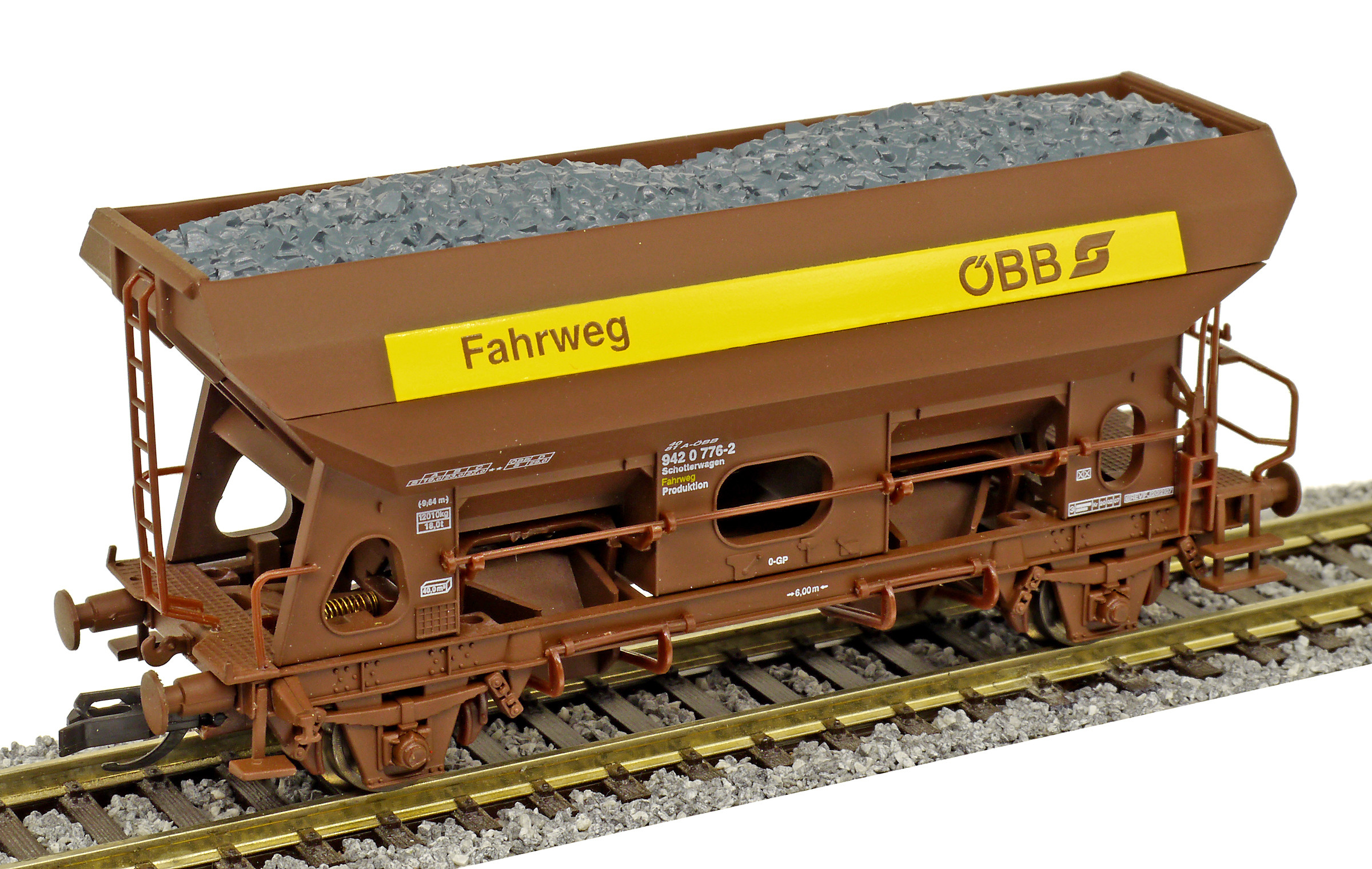 | nákladní samovýsypný vůz hnědý s nákladem „Fahrweg“ |