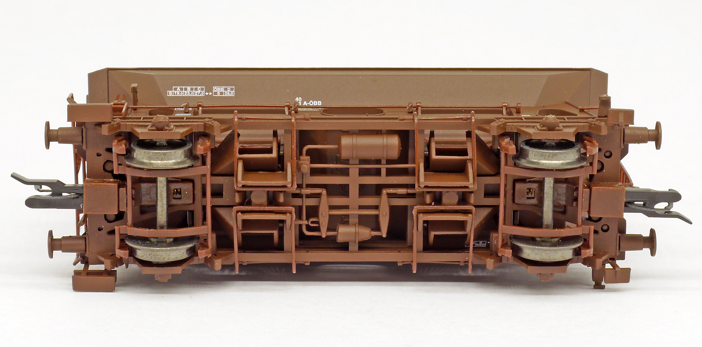 měřítko 1:120 - rozchod kolejí 12 mm kinematika krátkého spřáhla (KKK) podle normy NEM 358 83 mm - celková délka modelu přes nárazníky 2 - celkový počet náprav nebo rozložení náprav
