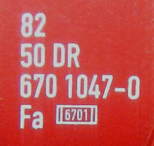 | • 82 50 670 1047-0 | → | upřesnění řady a pořadové číslo |