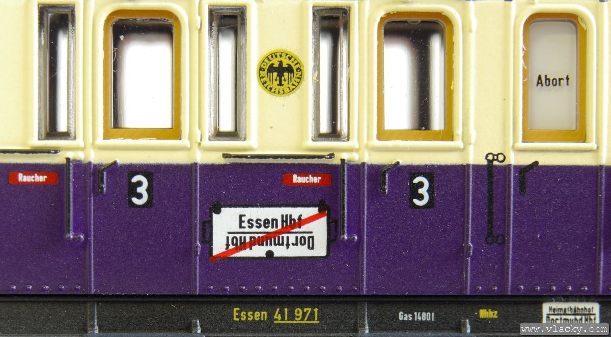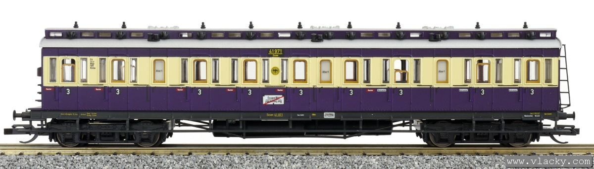 | oddílový osobní vůz fialový-slonová kost se světle šedou střechou 3. tř. |