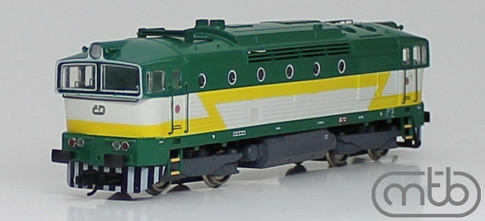 Popis   dieselová lokomotiva zelená-bílá se žlutými blesky
