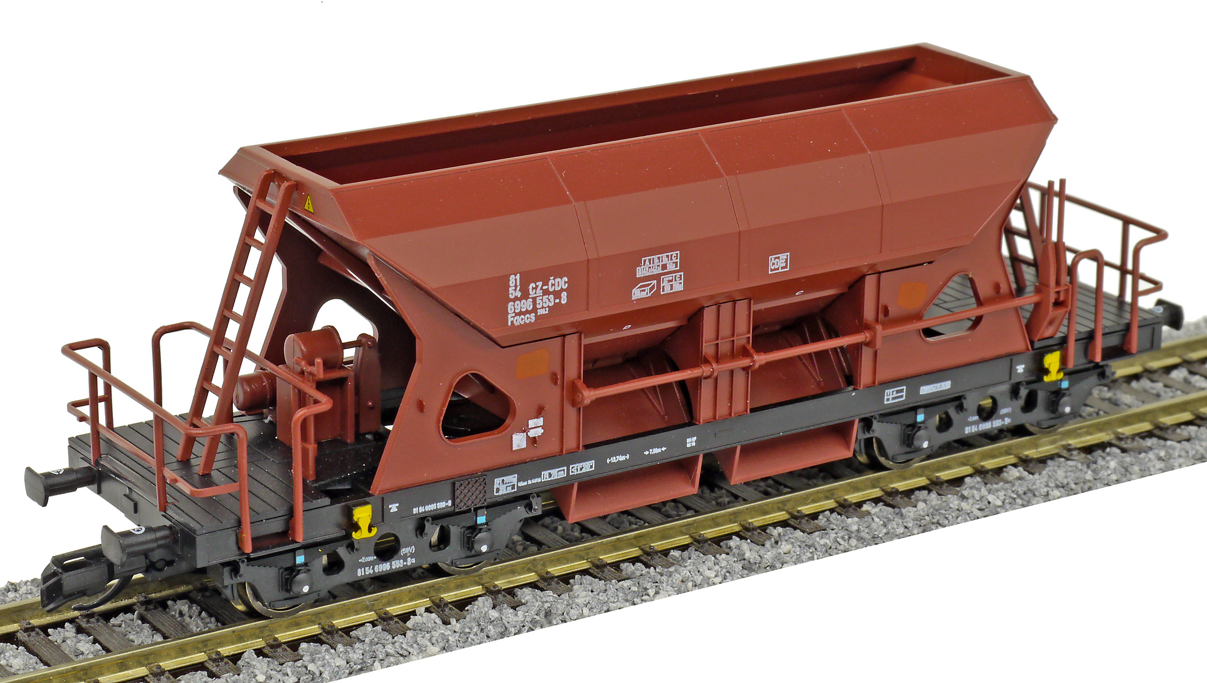 | • 81 54 6996 553-8 | → | nákladní, s podvozky, ve vlastnictví železniční správy, pro mezinárodní dopravu dle zvláštních umluv |
