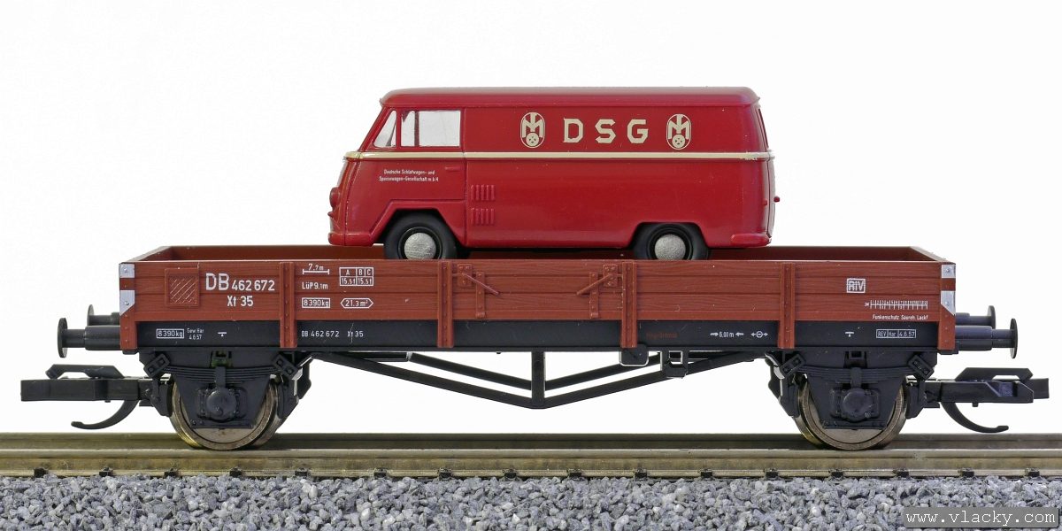 nízkostěnný nákladní vůz červenohnědý s nákladem dodávky Matador „DSG“