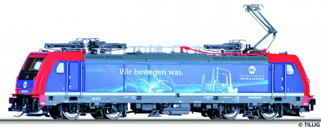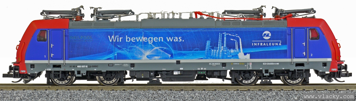 Popis   elektická lokomotiva červená-modrá „Infraleuna“
