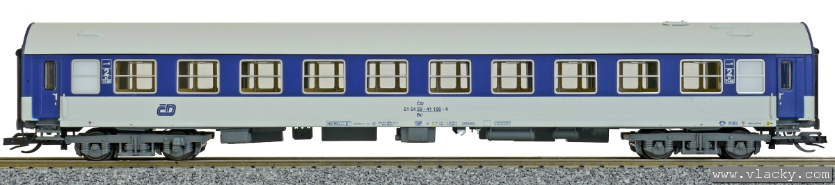 | lehátkový vůz modrý-bílý s šedou střechou 2. tř. |