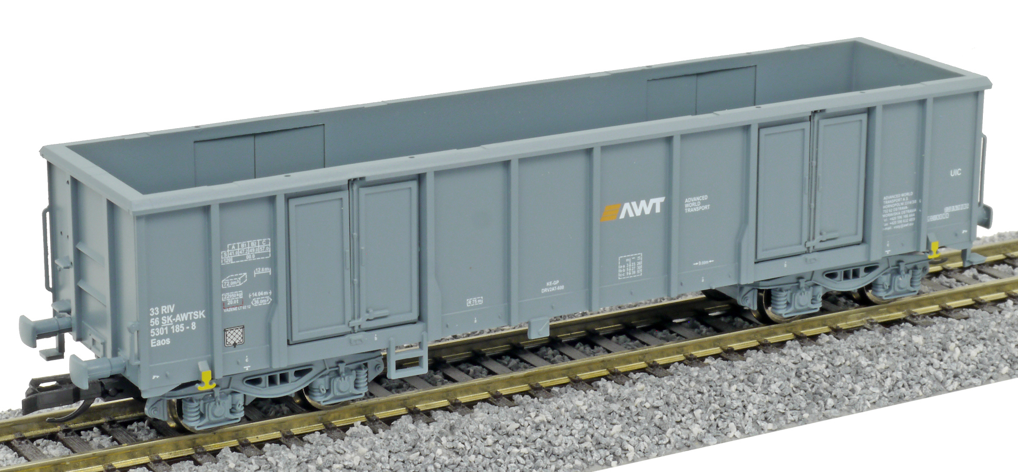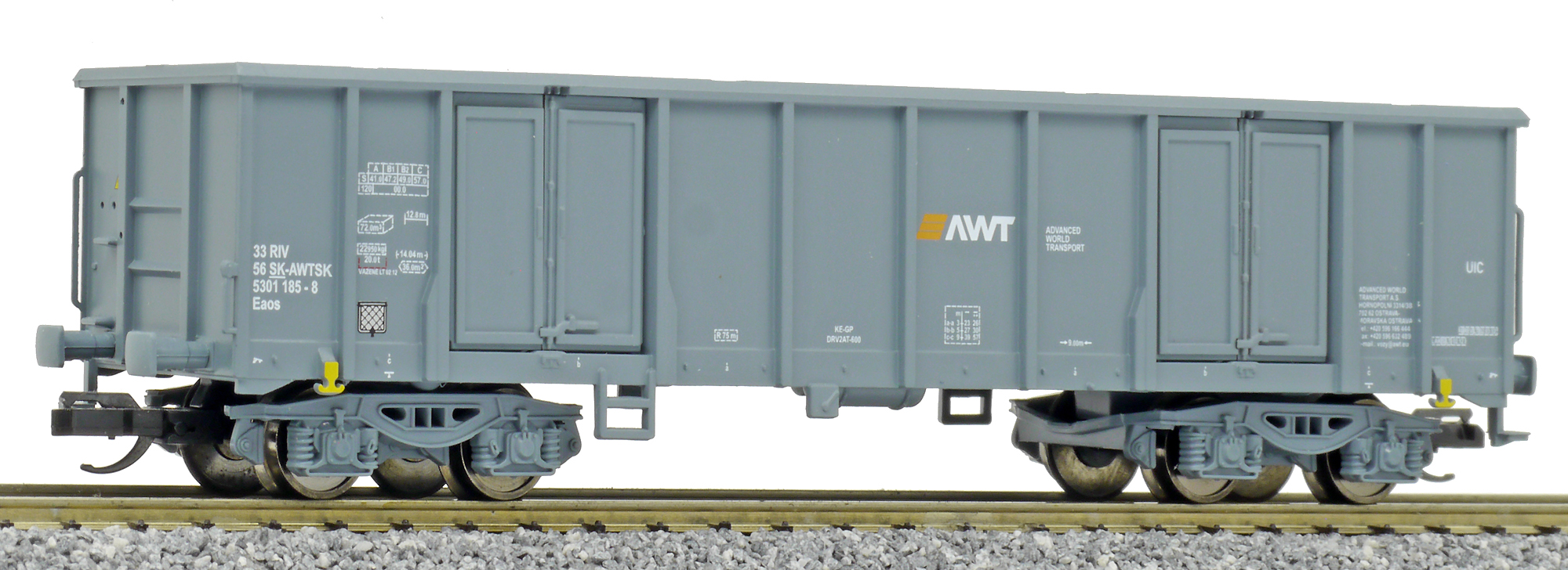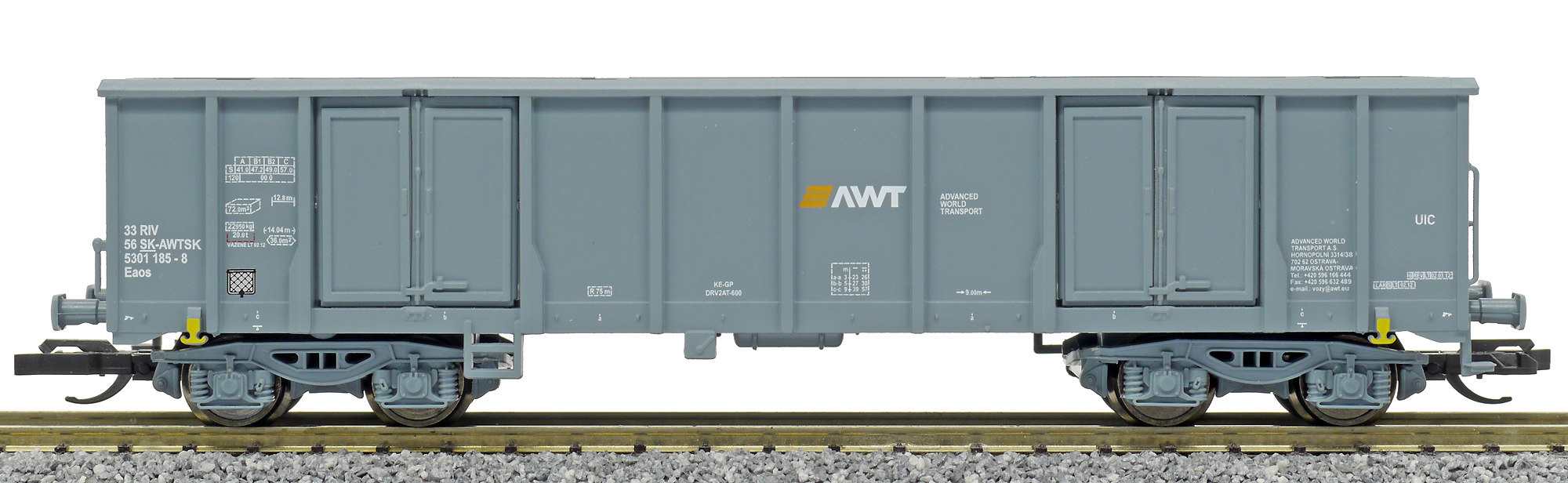 | vysokostěnný nákladní vůz tmavě šedý „AWT“ |