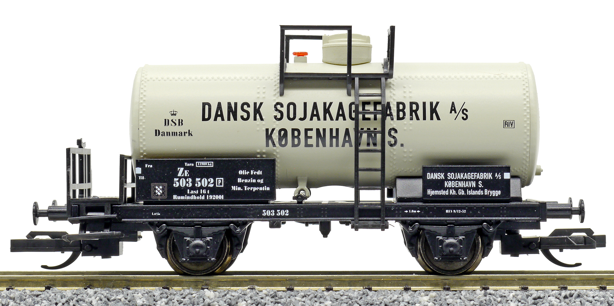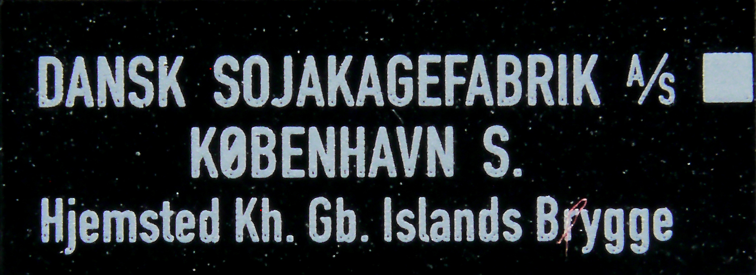 | stříbrná s černým rámem a pojezdem „Dansk Sojakagefabrik“ |