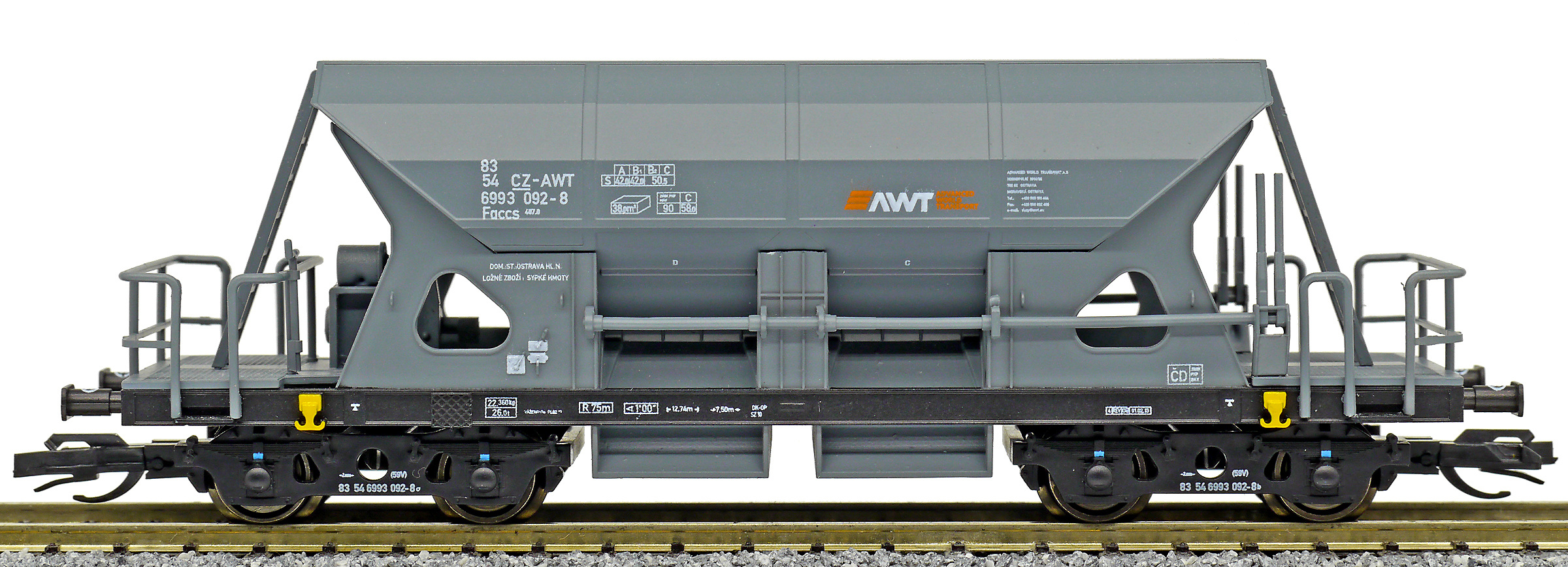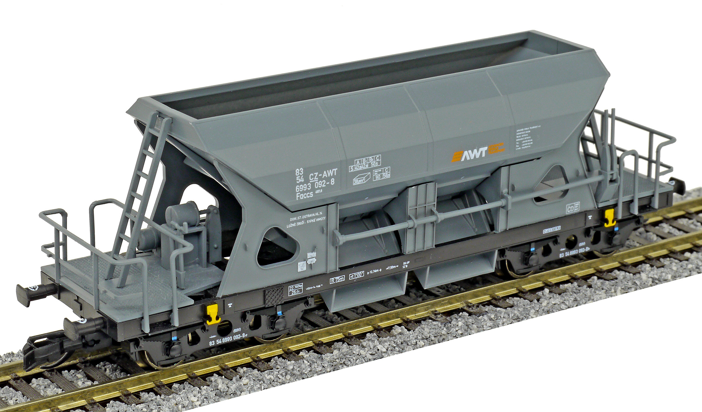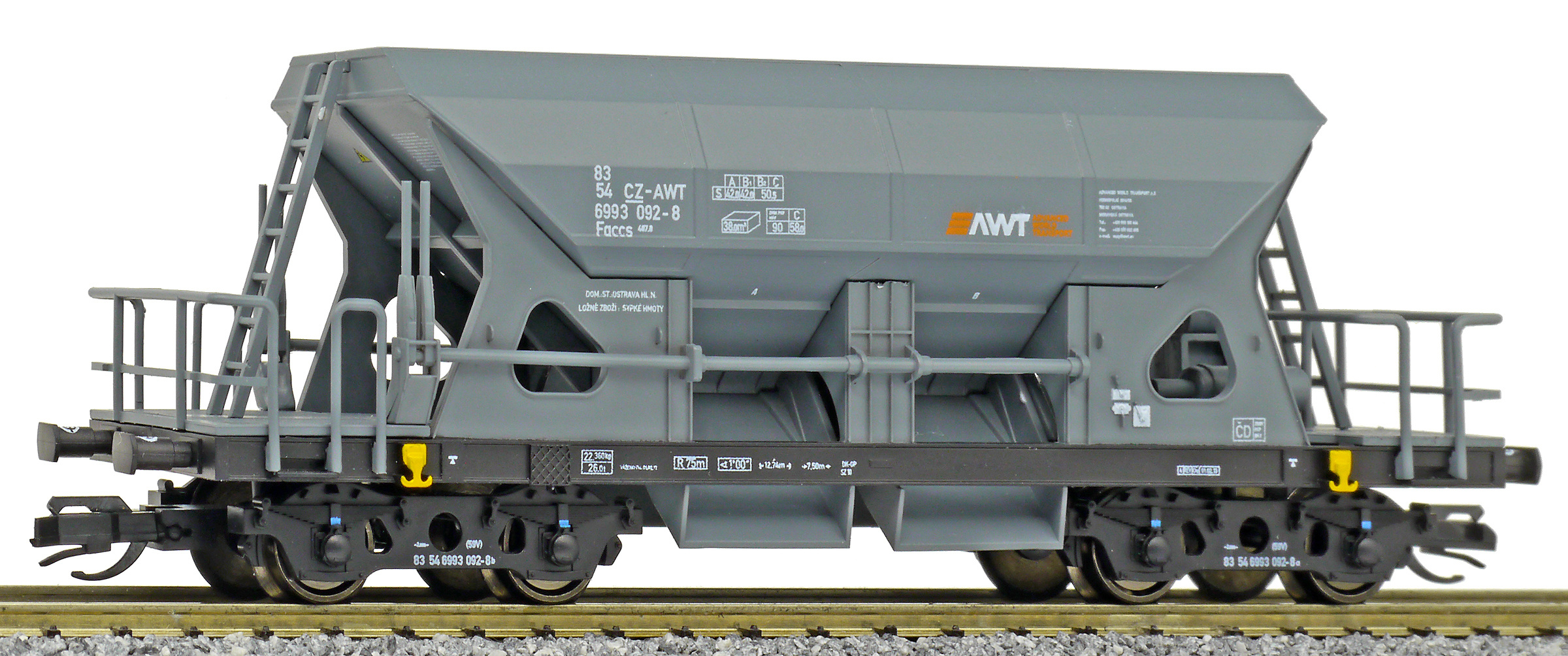 | nákladní samovýsypný vůz šedý s logem „AWT“ |