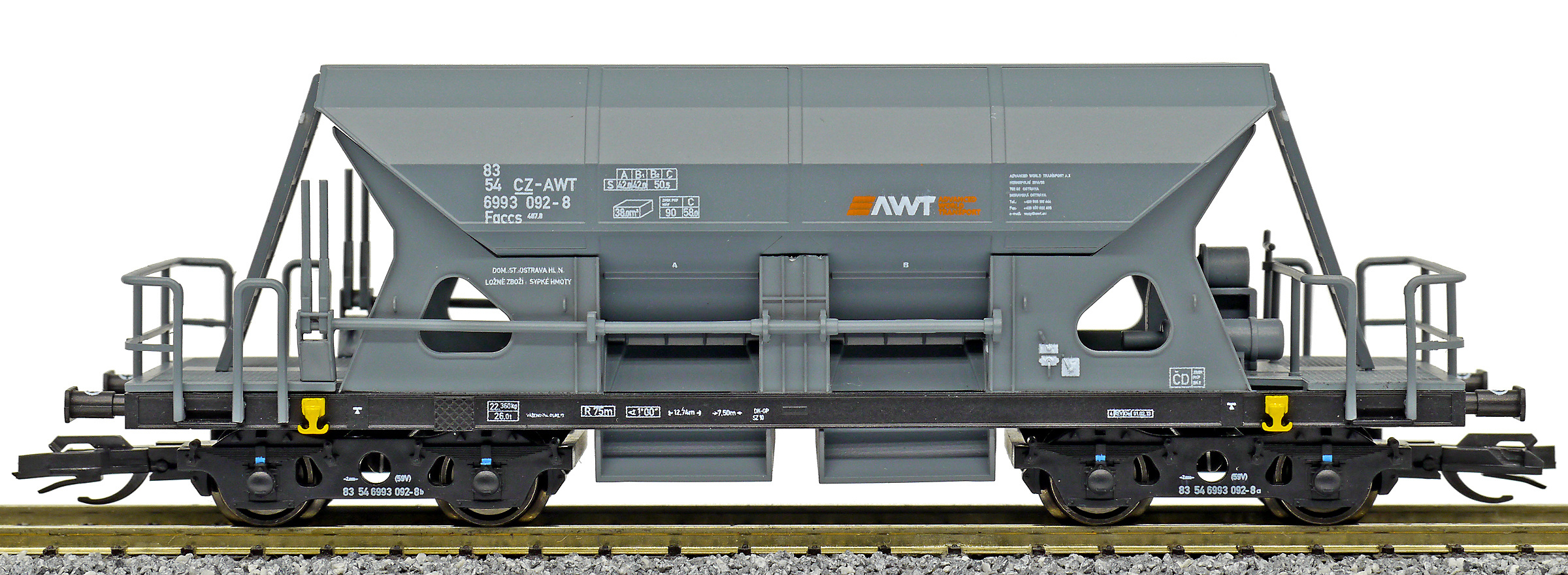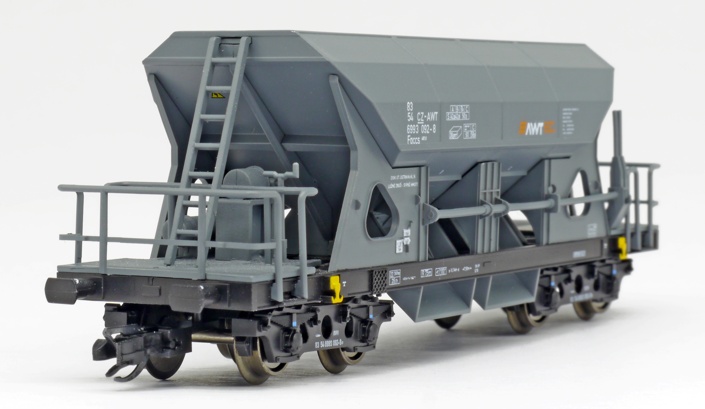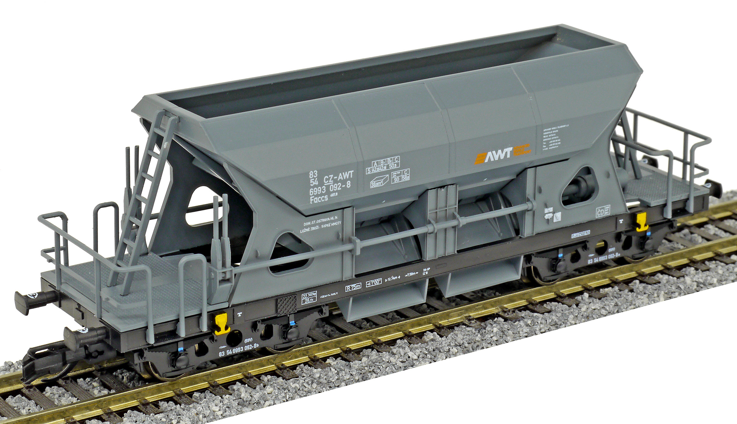 | nákladní samovýsypný vůz šedý s logem „AWT“ |