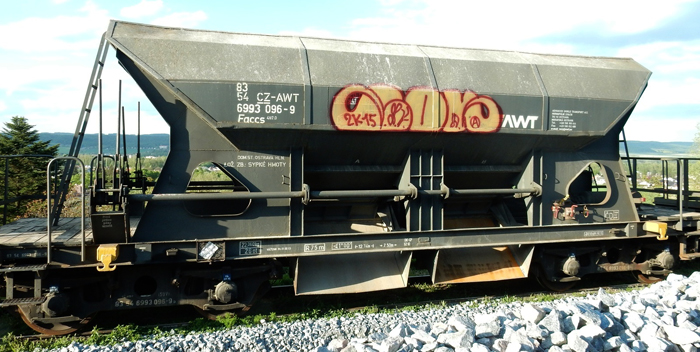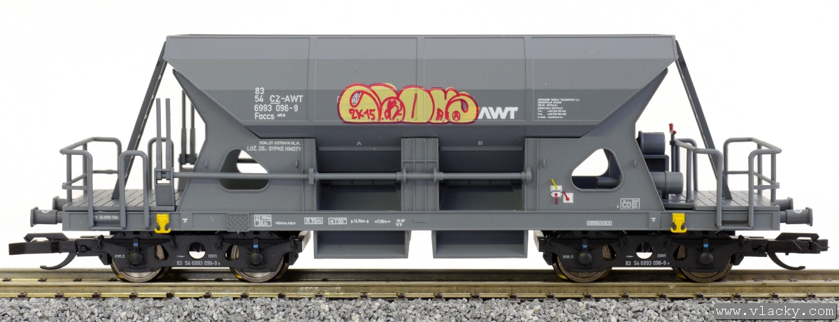 | nákladní samovýsypný vůz šedý s logem „AWT“ |