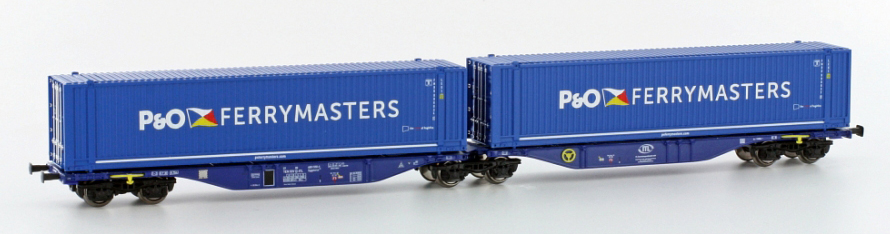 | dvoudílný kontejnerový vůz modrý se dvěma kontejnery 45' „P&O“ |
