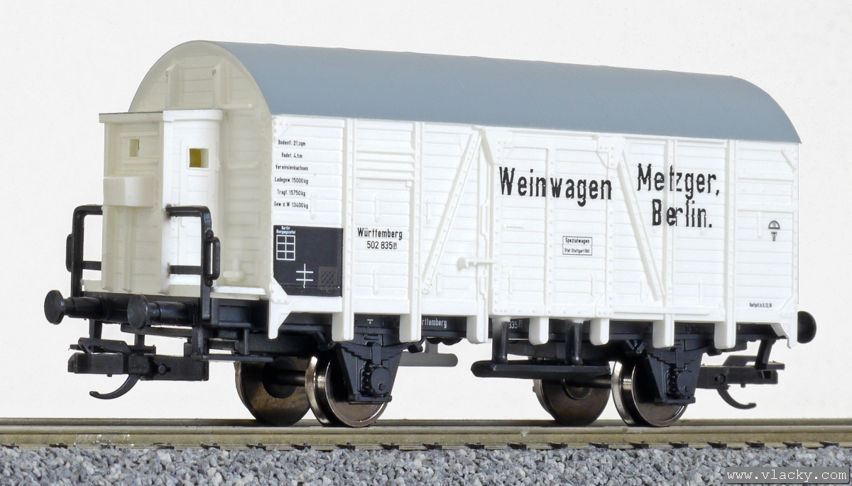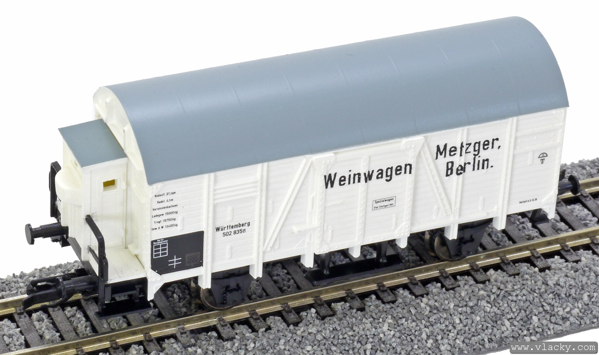 | bílý s šedou střechou a brzdařskou budkou „Metzger“ |
