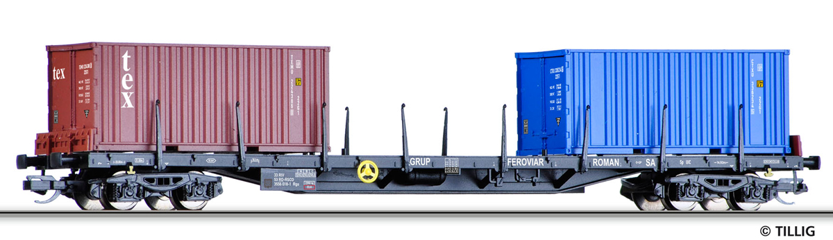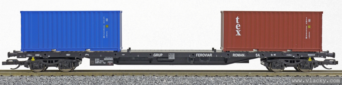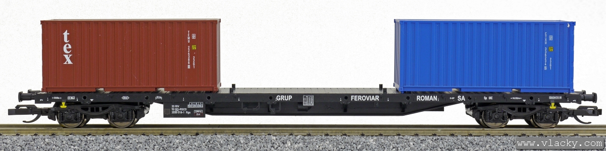 | nákladní plošinový vůz černý se dvěma kontejnery 20' |