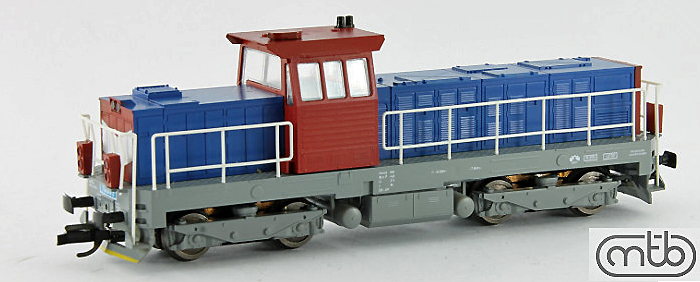 Popis   dieselová lokomotiva červená-modrá s šedým rámem a pojezdem