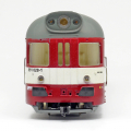| motorový vůz červený s krémovým pruhem, šedá střecha |