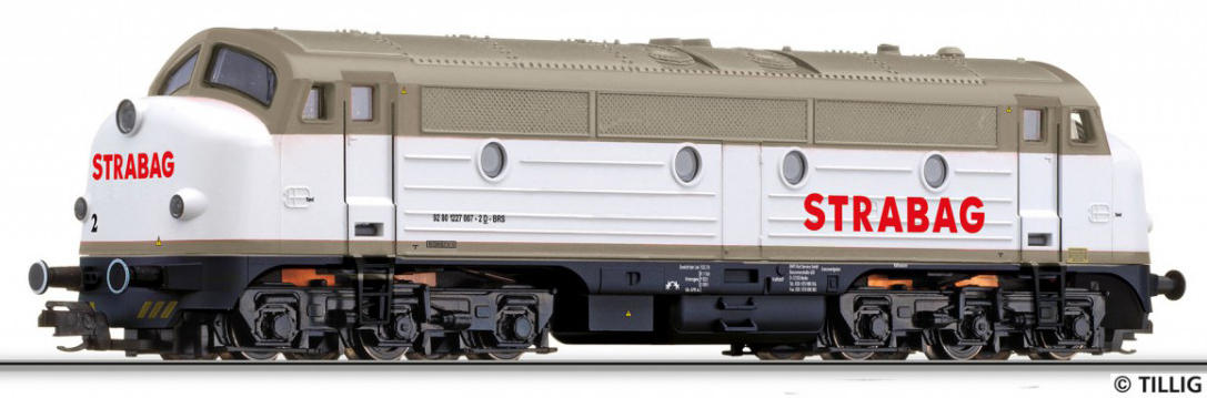 Popis   dieselová lokomotiva bílá-šedá „STRABAG“