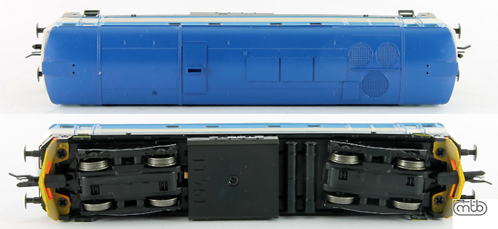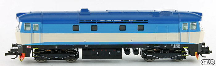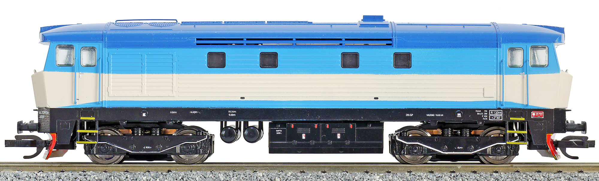 Popis   dieselová lokomotiva v barevné kombinaci modrá-bílá, černý pojezd