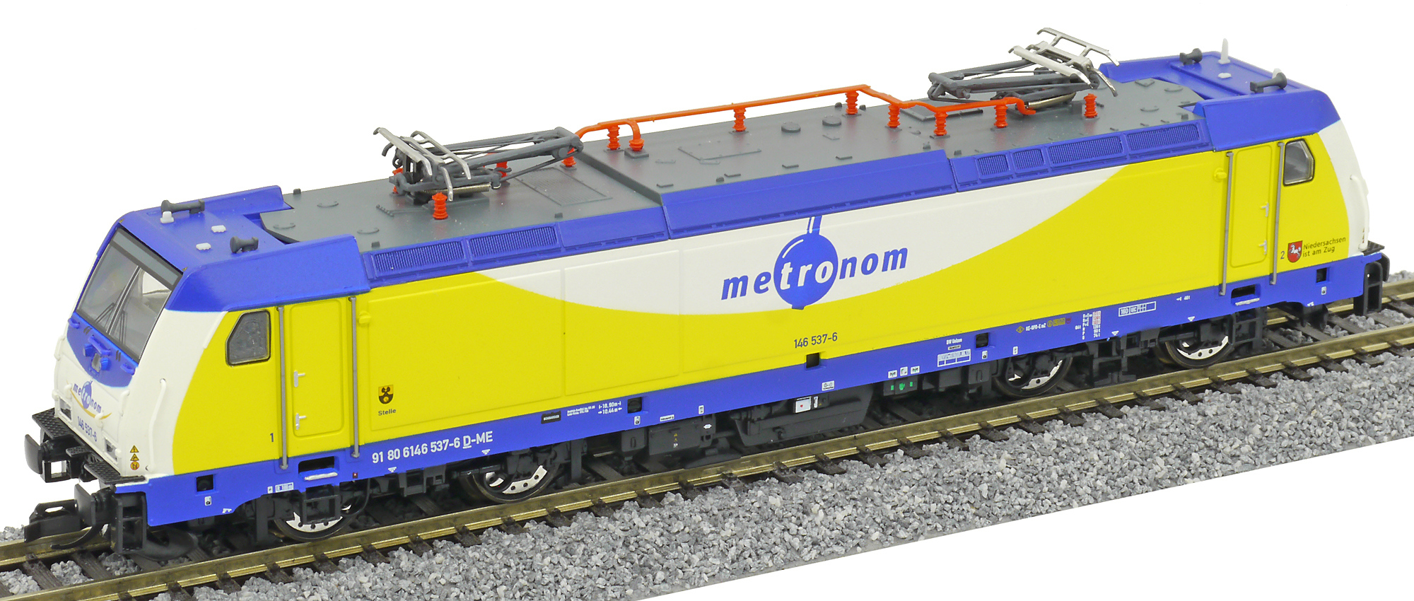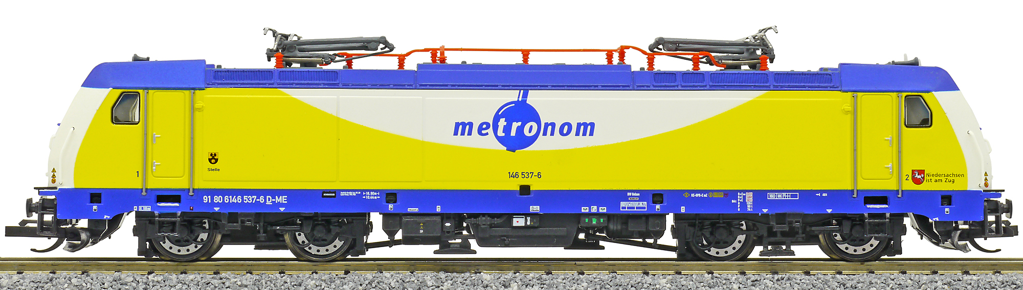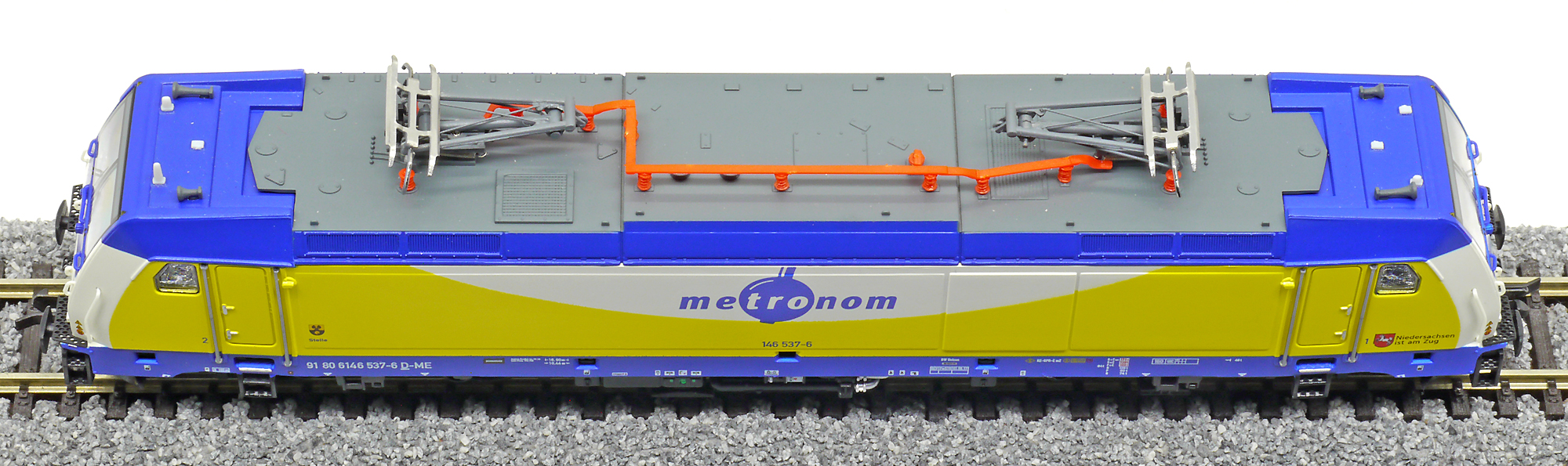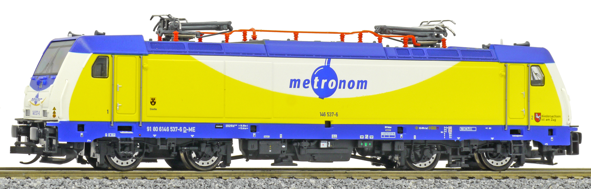 měřítko 1:120 - rozchod kolejí 12 mm osvětlení - 3 reflektory vpředu, 2 světla vzadu, přepínatelné podle směru jízdy kinematika krátkého spřáhla (KKK) podle normy NEM 358 digitální rozhraní podle NEM 658 s konektorem PluX12 možný provoz s pantografem 158 mm - celková délka modelu přes nárazníky 4 - celkový počet náprav nebo rozložení náprav 300 g - hmotnost brutto - model včetně prodejního obalu