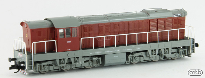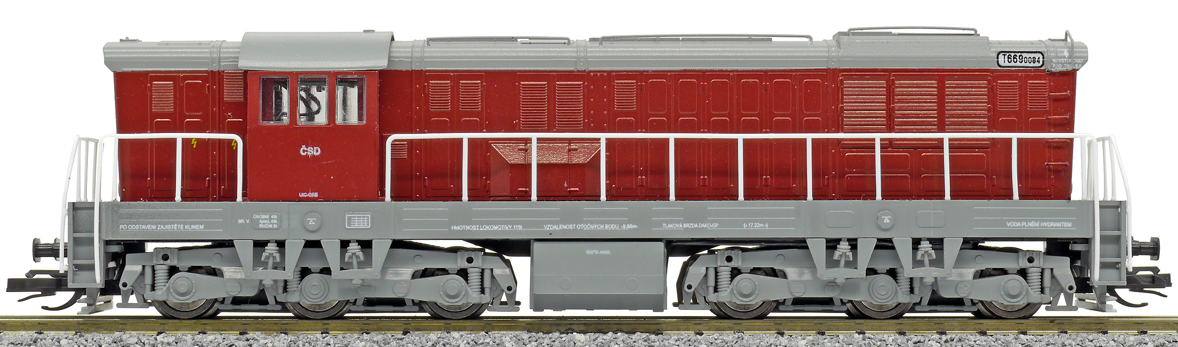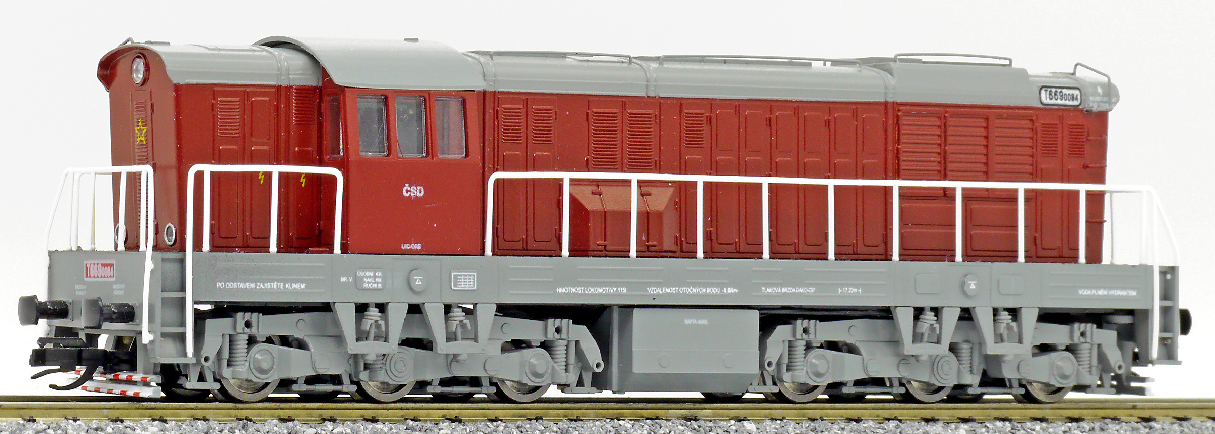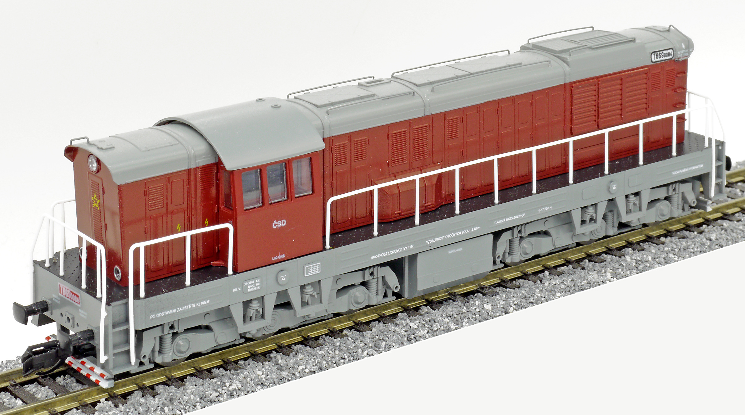 | dieselová lokomotiva červená-šedá střecha, rám a pojezd |