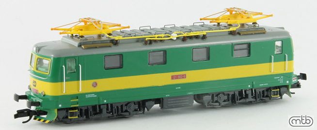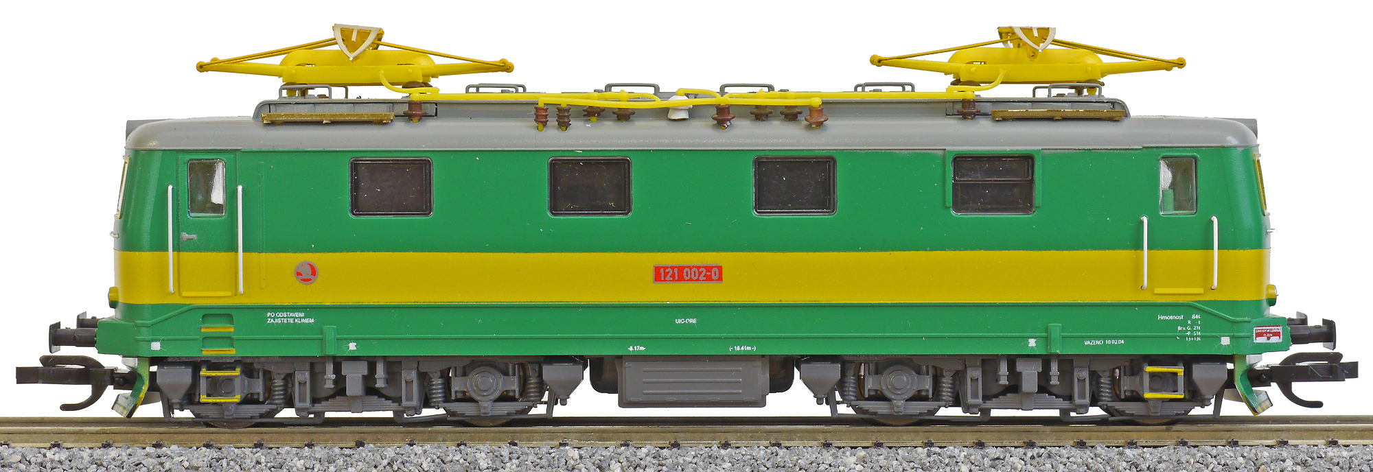Popis   elektrická lokomotiva zelená s šedou střechou a žlutým výstražným pruhem