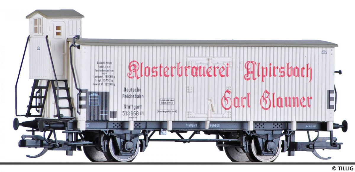 | chladicí vůz bílý s šedou střechou „Klosterbrauerei Alpirsbach“ |